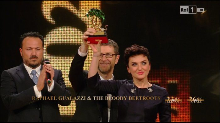 L’ultima serata del Festival di Sanremo si è aperta con l’entrata in scena di Terence Hill nei panni di Don Matteo chiamato a suggellare il matrimonio artistico tra Fabio Fazio e Luciana Littizzetto (finché Sanremo non ci separi, ndr) ad aprire la gara invece ci pensa Giuliano Palma con la sua Così lontano a seguire tutti gli altri concorrenti compreso Riccardo Sinigallia (fuori gara). La giura di qualità presieduta da Paolo Virzì attenta attenta giudica i brani presentati decretando anche il Premio della critica “Mia Martini” che quest’anno è stato assegnato a Cristiano De André per “Invisibili“, la canzone “scartata” fra le due che l’artista aveva portato in gara. Ai Pertrbazione invece va il premio della sala stampa radio e tv per “L’unica“.