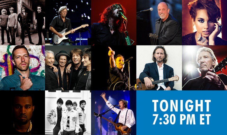 In sequenza, subito dopo, Kanye West che si lascia trasportare dal momento proponendo un mix di 12 canzoni (tra cui alcuni medley), Billy Joel che propone 6 brani durante la sua intensa mezz’ora di esibizione, Chris Martin che propone una versione unplugged di “Viva la Vida” e la versione al pianoforte di “Us Against the World”: nel mezzo delle due canzoni invita sul palco Michael Stipe ed insieme intonano una versione unplugged di “Losing My Religion” con annessa standing ovation del pubblico presente (e anche di quello a casa).