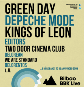 Uno dei maggiori festival spagnoli ha iniziato a diramare qualche nome, davvero molto importante, per la sua prossima edizione che si terrà dall’11 al 13 Luglio 2013 a Bilbao. Il Bilbao BBK Live è uno dei più popolari festival rock e pop della Spagna e, seppur la sua creazione risalga solo ad una manciata di anni fa, nel corso del tempo è diventato una delle kermesse più ammirate d’Europa. Iniziamo subito a parlare dei nomi che fanno largo sfoggio all’interno del sito internet della manifestazione, dai Green Day passando per i Depeche Mode e toccando gli Editors. Non possiamo di certo dimenticare i Kings Of Leon e i Two Door Cinema Club, senza tralasciare i DeLorean, We Are Standard e DeLorentos, concludendo con L.A.