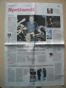 Sul quotidiano Il Mattino, nella sezione “Spettacoli” dello scorso 7 novembre 2012, è apparso un articolo firmato dal giornalista e critico musicale Federico Vacalebre dal titolo “Springsteen prenota Napoli e prepara il Plebiscito Rock”. Nell’articolo si parla di una possibile esibizione del Boss in Piazza del Plebiscito a Napoli, già teatro lo scorso Luglio 2012 dei concerti di Ligabue e Laura Pausini. Tra l’altro, nell’articolo veniva riporta la possibilità che anche Roger Waters potesse portare in scena lo show “The Wall” (notizia che non ha avuto fondamenta visto che l’ex Pink Floyd sarà in scena il prossimo Luglio allo Stadio Olimpico di Roma e allo Stadio Euganeo di Padova). Tuttavia si aspettano ancora conferme in merito, dato l’ imponente lavoro di security nonchè i probabili problemi logistici che cui far fronte (ricordiamo che nel frattempo sarà atteso Mark Knopfler in Piazza del Plebiscito a Napoli il prossimo Luglio 2013). Stesse voci riportate da un articolo apparso on-line su Il Corriere della Sera datato 20 Novembre 2012: nel frattempo, raggiunto dai microfoni di Radio KissKiss, il sindaco di Napoli Luigi De Magistris ha dichiarato che il prossimo anno l’Ippodromo di Agnano sarà palcoscenico di importanti eventi a scopo culturale/musicale (così come riportato dall’Associazione Culturale PinkCadillac Music).