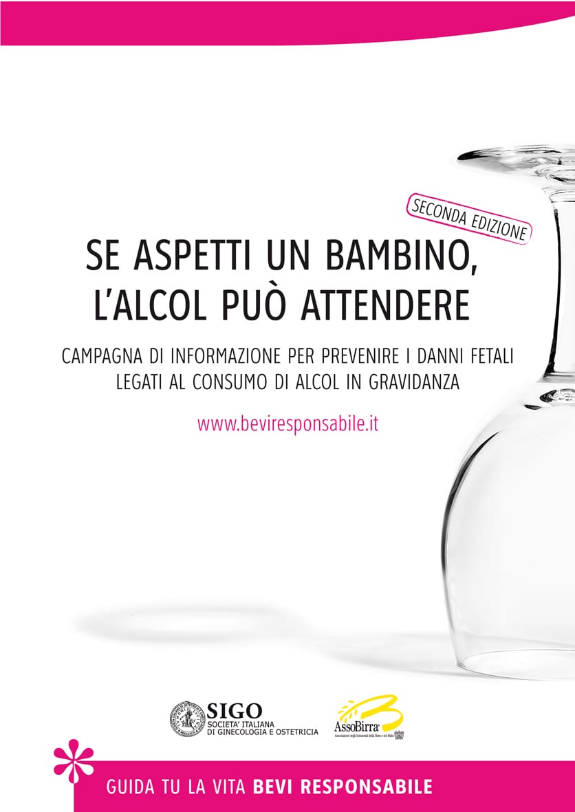 Da questi dati nasce l’idea di sensibilizzare la questione alcol durante la gravidanza dopo i risultati positivi ottenuti con la prima edizione di “Se aspetti un bambino l’alcol può attendere“, SIGO (Società Italiana di Ginecologia e Ostetricia) e AssoBirra (Associazione degli Industriali della Birra e del Malto) lanciano dall’8 al 31 marzo la seconda edizione dell’iniziativa. La campagna prevede un’intensa attività di informazione: dall’8 marzo e per tutto il mese verrà attivato un vero e proprio “movimento d’opinione” che cercherà di dialogare sulla rete, facendo cultura su questo delicato aspetto della vita delle mamme in gravidanza. Gode del sostegno di un nutrito gruppo di personaggi al femminile tra celebrities, scrittrici, blogger, chef e sportive che hanno deciso di sposare questa iniziativa.