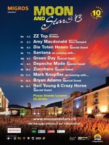 Annunciati i nomi del Moon and Stars, manifestazione a carattere musicale che si svolge nella splendida località di Locarno, in Svizzera. Quest’anno il Festival si terrà dal 4 al 14 Luglio 2013 e i nomi del cartellone sono senza dubbio strepitosi. Ogni sera, in Piazza Grande, viene proposto un artista di fama mondiale e quest’anno il cartellone è tutto da invidiare, dai Depeche Mode a Neil Young. Nato nel 2004 grazie alla collaborazione con la Good News Production, il Moon and Stars è sicuramente un appuntamento molto interessante e nel corso degli anni ha sempre più coinvolto gli spettatori, arrivati persino a 90.0000 totali nell’arco dell’intera rassegna.