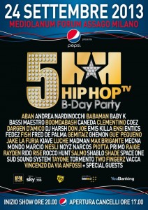 Dopo lo straordinario successo dello scorso anno, che aveva rgistrato il sold out, torna in Italia, precisamente al Mediolanum Forum, il quinto “HIP HOP TV B-DAY PARTY“, l’evento più importante dell’anno dedicato al genere: HIP HOP TV, l’unica emittente televisiva dedicata alla “musica urban” in Italia (in onda solo su SKY canale 720). L’evento, presentato da Pepsi, si terrà il 24 Settembre prossimo.