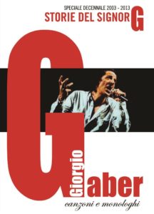 E’ l’ultimo atto, questo, di una serie di iniziative straordinarie messe in atto per omaggiare nuovamente la figura del Signor G: un anno fa circa venne dato alle stampe “…Io ci sono”, doppio CD in cui i più importanti artisti italiani reinterpretavano brani di Gaber, e la scorsa estate l’intera Versilia è stata centro di un mese di attività, concerti, spettacoli organizzati dalla Fondazione Gaber e conclusosi con le due serate del Festival Gaber di Viareggio.