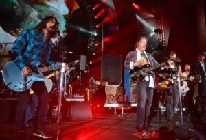 A chiudere il cerchio degli headliners (cui si aggiungono i Band of Horse e K’naan) ci pensa Daniel Aurbach con i Black Keys mentre non possiamo non citare anche l’esibizione di John Legend e dei Simon e Garfunkel emozionati e onorati di essere sul quel palco; superlative le parole di Dave Grohl che più volte ripete al pubblico che la serata è unica nel suo genere, in quanto non sa bene quand’è che sia possibile un altro evento del genere. E l’evento è stato arricchito dall’esecuzione di “Rockin’ in the Free Wolrd” che ha visto sul palco insieme Dave Grohl, Neil Young e Daniel Auerbach per circa dieci minuti di puro rock’n’roll.
