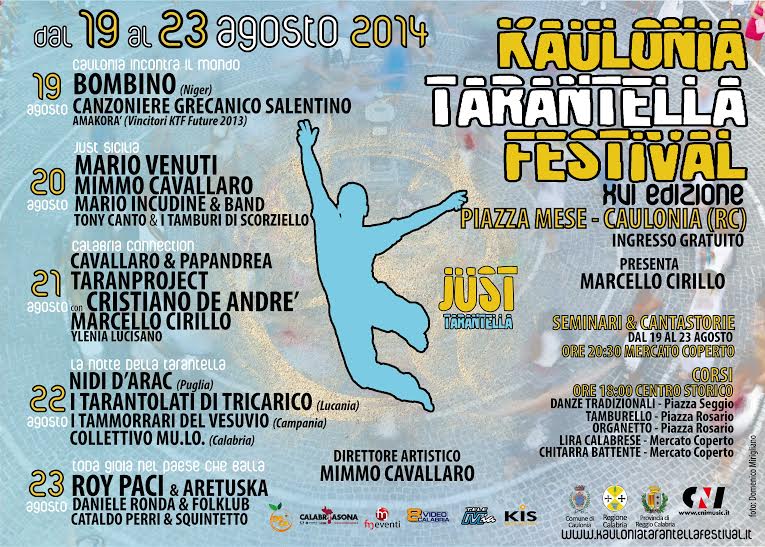 Uno degli appuntamenti piàù attesi dell’estate calabrese è sicuramente il rinomato Kaulonia Tarantella Festival che quest’anno si svolgerà dal 19 al 23 agosto nel suggestivo scenario di Piazza Mese, nel cuore del borgo antico di Caulonia (RC) e per l’edizione 2014 avrà come titolo e tema lo slogan: Just Tarantella.