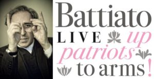 Al termine dei doverosi applausi ad Arisa, le luci si spengono per accogliere l’unico protagonista della serata: Franco Battiato. Il cantautore siciliano appare, seguito dai musicisti che l’hanno accompagnato durante la tournée, e rivolge un timido sorriso al pubblico che appare già entusiasta di poter essere presenta alla serata. Nessuna presentazione iniziale e tanto meno alcuna parola proferita dal Maestro che, immediatamente attacca con “Up patriots to arms”.