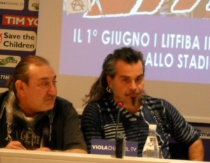 Oggi allo Stadio Artemio Franchi di Firenze, i Litfiba hanno presentato il loro concerto-evento che si terrà il prossimo 1 giugno proprio allo Stadio, luogo simbolico della città di Dante, soprattutto per i fan sfegatati della Fiorentina. Piero Pelù e Ghigo Renzulli hanno incontrato la stampa, presentati da Gian Luca Baiesi, Direttore Esecutivo di ACF Fiorentina, e il calciatore Per Kroldrup.