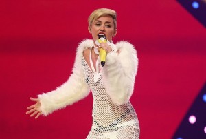 E se nel videoclip di questo pezzo (che ha superato i 100 milioni di visualizzazioni in appena 6 giorni) l’avevamo vista in spoglie di moderna amazzone cavalcare totalmente nuda una palla da demolizione, all’iHeartRadio Music Festival 2013 la troviamo coperta solo di un minuscolo slip e due copricapezzoli neri, fasciata in una sottile maglia di rete bianca. Non solo, nel corso della sua performance sul palco della MGM Grand Garden Arena oltre a cantare in un eccentrico microfono a forma di banana, balla disinibita, toccando più volte le proprie parti intime.