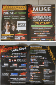 Infine, sempre sul profilo @muselive si può trovare un flyer dalla fonte al momento sconosciuta. @maja1985 ha postato sul noto sito di microblogging il volantino che vi mostriamo dove si parla di un lancio del disco mediante la modalità di proiezione nei cinema, seguendo quella, all’incirca, già utilizzata dai Red Hot Chili Peppers. Il volantino parla di date francesi sold-out (quelle già previste del tour ufficiale rilasciato) e sul web è già iniziata la corsa ad indovinare quale sarà la città che ospiterà questo inaspettato live dei Muse. Ricordiamo ancora una volta che la notizia non è ufficiale, come non lo sono le altre due news presentate. Per dovere di cronaca vi abbiamo informato sulle possibili voci a riguardo, sottolineando che sul sito ufficiale della formazione non è apparsa ancora nessuna notizia riguardante questi temi. Ci sarà un fondo di verità in queste indiscrezioni oppure sono semplicemente dei simpatici fake?