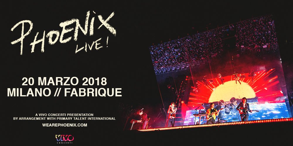 Dopo lo straordinario successo al Postepay Sound Rock di Roma, tornano in Italia i Phoenix per presentare live la loro ultima fatica in studio, “Ti amo“, pubblicato lo scorso giugno. L’appuntamento è per il 20 marzo al Fabrique di Milano.