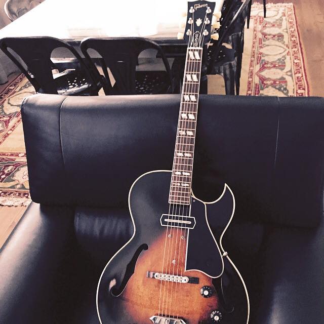 “Ciao Pino, ti sto pensando, forte. Questa e’ la tua Gibson 175Es che mi regalasti nell’88, cosi, senza nemmeno conoscermi bene di persona, la seconda volta che ci siamo visti, ti sei presentato con questo splendido strumento con annesse le sue corde “speciali” che in Italia non si trovavano. Questo e’ stato il primo segno della tua grande generosita’ che io non scordero’ MAI. Ti portero’ sempre nel cuore!”