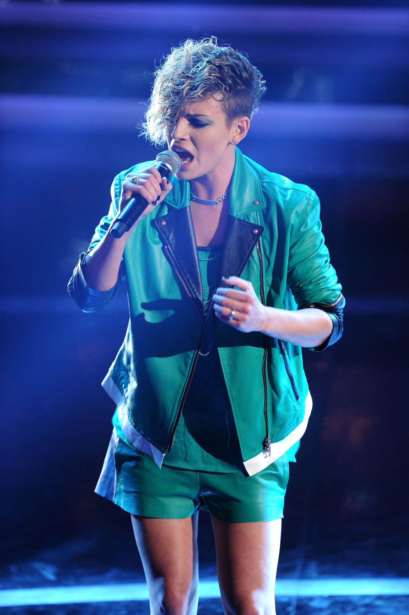 In questo inizio Festival di Sanremo 2012 altamente dubbioso che, rimanda molti cantanti al prossimo ascolto, una delle poche certezze è stata Emma Marrone con “Non è L’inferno”. La giovane cantante si propone sul palco con un look molto aggressivo: taglio di capelli asimmetrico e molto corto accompagnato da un completo a tre pezzi verde acceso, contornato da risvolti neri. Il look di Emma è terminato con un paio di scarpe nere molto alte, che accompagnano l’audace completo apprezzato anche da Rocco Papaleo. Per tutto il Festival di Sanremo, la cantante pugliese indosserà creazioni appositamente disegnate per lei da Ennio Capassa e, più in generale, gli abiti di Emma sono targati Costume National.
