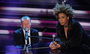 L’esibizione è continuata con il brano che proprio D’Alessio e la Gray hanno inciso assieme, “Io sarò per te“: lui l’ha composta, lei ha voluto tradurre la propria parte in inglese. Su questo duetto niente da dire, perchè il pezzo è totalmente nello stile del cantante napoletano, se lo è cucito addosso, quindi lui è calzante. Ma in “Almeno tu nell’universo” era un po’ fuori luogo, decisamente meglio la Bertè.