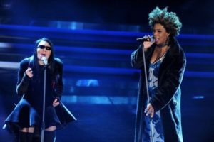Il loro è stato uno dei duetti in cui è stato dato meno spazio all’ospite, ma quasi esclusivamente ai Big in gara. Non si fa, insomma, è poco elegante invitare qualcuno in casa e non lasciarlo mai parlare. Il pezzo che avevano scelto era di per sè origine di una polemica: con tutte le canzoni possibili da cantare hanno scelto “Almeno tu nell’universo”, forse la più famosa di Mia Martini, sorella di Loredana Bertè scomparsa quasi dieci anni fa.