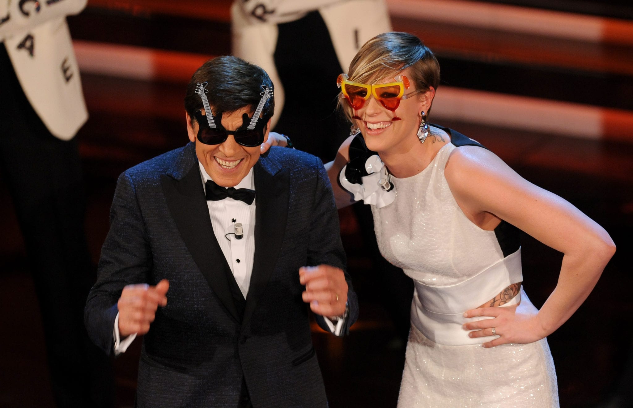 Gianni Morandi e Federica Pelligrini - Sanremo 2012 | © TIZIANA FABI/AFP/Getty Images