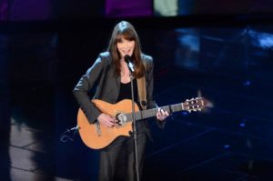 Una delle attesissime ospiti della seconda serata di Sanremo 2013, Carla Bruni, fa il suo ingresso in un informale completo dalla foggia maschile dopo le prime due esibizioni, per presentare “Chez Keith Et Anita” brano estratto dall’ultimo disco dell’ex first lady francese, “Little French Songs”, un pezzo che lei esegue con il solito stile defilato e la voce sottile accompagnandosi alla chitarra al fianco della sua band anche se, ci è sembrato, aiutata dal ricorso al playback. Dopo l’esibizione c’è stato spazio per un breve faccia a faccio tra il conduttore e l’ex modella che nel 2009 era stata ospite sul palco del Festival ma soprattutto per uno schetck con Luciana Littizzetto che, accompagnata da Carla Bruni alla chitarra, offre una spassosa versione di ” Quelqu’un m’a dit” ben noto brano di Carlà.