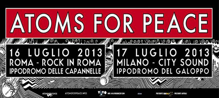Il supergruppo formato da Thom Yorke (Radiohead), Flea (Red Hot Chili Peppers), Nigel Godrich (produttore Radiohead), Mauro Refosco (percussionista) e Joey Waronker (R.E.M) sta definendo il tour estivo e fortunatamente gli Atoms For Peace si sono ricordati anche dell’Italia. Il mese di luglio sta diventando sempre più infuocato per quanto riguarda i live che ci attendono ma queste due date sono di certo da tenere in considerazione.