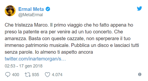 Ermal Meta è poi intervenuto con un tweet che ha tutta l’intenzione di chiudere la triste vicenda, sempre con molta educazione: