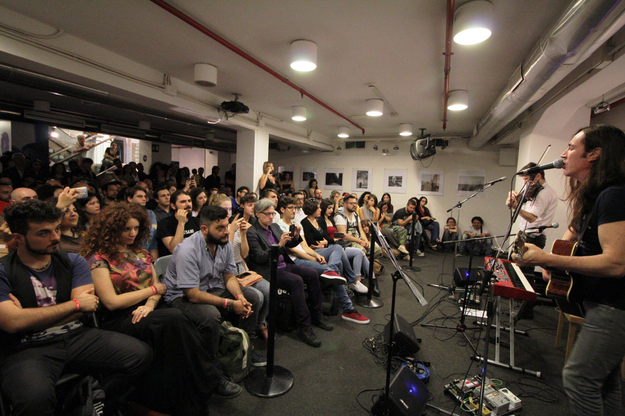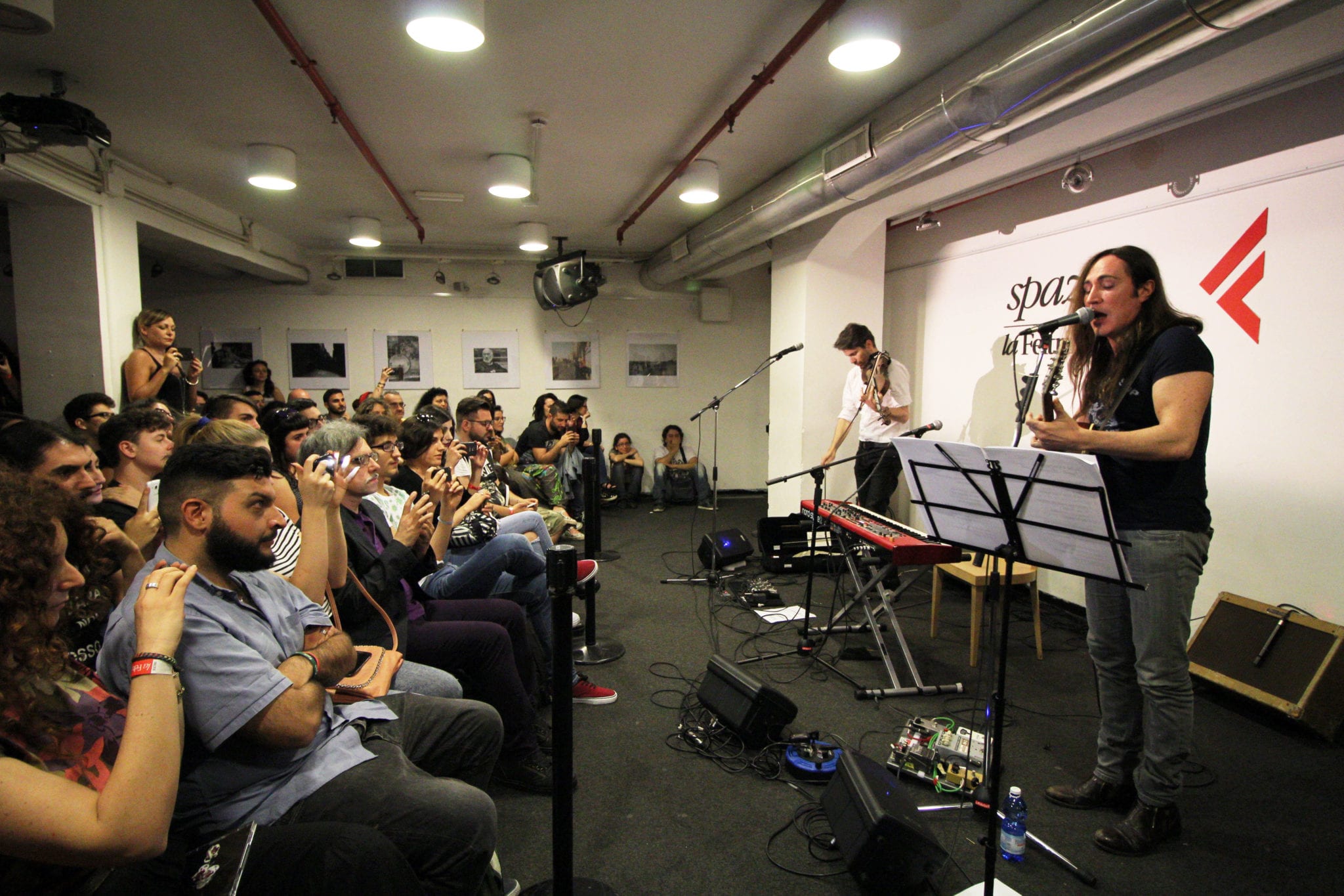 Chitarra, violino, pianoforte. Voce. “Come fai ad avere una voce così forte, espressiva!?” – chiedono dal pubblico – “fondamentalmente sono un baritono basso ma provengo dalla cultura punk dove se non urlavi non riuscivi a trasmettere ciò che avevi dentro – salvo poi dare una testata a chi era di fronte (ride)” – continua. “Le sonorità di quest’album mi permettono di espellere le tossine.” La rinascita, già. Un lavoro “Folfiri o Folfox” che nasce e si sviluppa dopo periodi di profondi cambiamenti, di perdite, di morte e vita. Un flusso che si rinnova, sempre. Nulla di (ri)cercato, nessuna scelta anchilosata, solo dedizione al lavoro e ispirazione. Lo dice a chiare lettere Rodrigo D’erasmo, “ogni giorno in studio, ad orari ragionevoli pero'” – ride – “nessuna attesa, nessuna ricerca particolare, solo piena dedizione agli strumenti e alla fase compositiva. Manuel ha la capacità di elaborare le cose in maniera tempestiva, così mentre io elaboravo i miei dubbi lui imbracciava già la chitarra e tutto ha avuto senso, poi.” Ma gli Afterhours non sono solo Manuel Agnelli e Rodrigo D’Erasmo: “fondamentale è stata l’impronta di Roberto (Dell’Era) e Fabio (Rondanini) che in studio si sono superati. Ad esempio in “Se io fossi giudice”, mancava la timbrica, il pezzo non suonava. Poi è arrivata la chitarra…” – continua – “e l’impronta noise rock della batteria di Fabio!”. Molto materiale inedito, distrutto da scelte precise di contenuto: nulla c’entrava con “Folfiri o Folfox”, salvo poi riprenderlo in futuro.