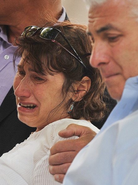 Mitch e Jonis Winehouse guardanogli omaggi floreali
