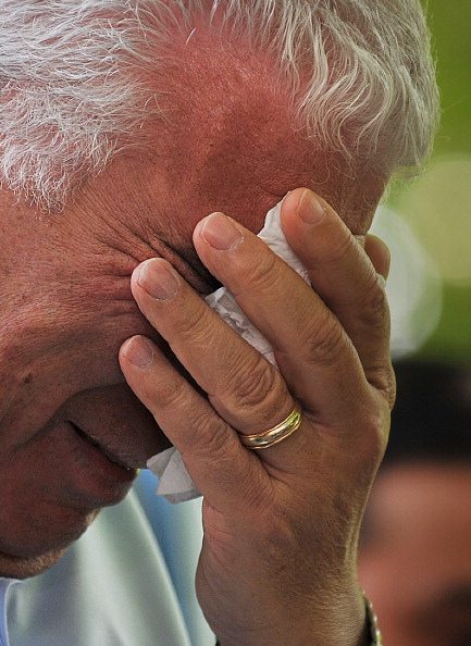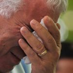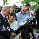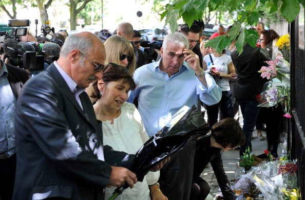 Mitch e Jonis Winehouse guardanogli omaggi floreali