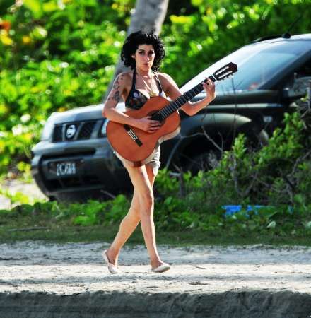 Dopo l’ultima figuraccia fatta sul palco del Santa Lucia Jazz Festival, dove si era esibita barcollando (probabilemte per l’abuso di alcool) e abbandonando il palcoscenico in anticipo (“Scusate mi annoio” era stata la sua giustificazione), Amy Winehouse è stata immortalata sulla spiaggia di Santa Lucia mentre spensierata passeggiava con la chitarra in mano.