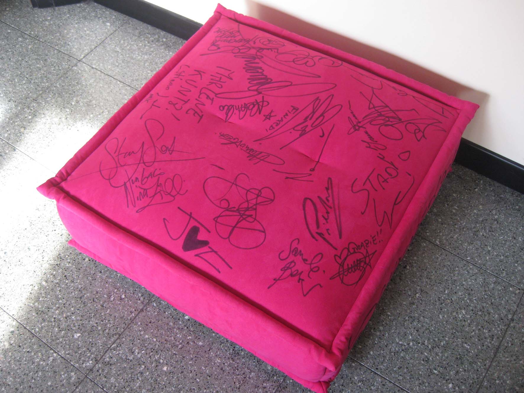 - Il pouf Chateau d’Ax autografato dagli artisti di Sanremo 2012;