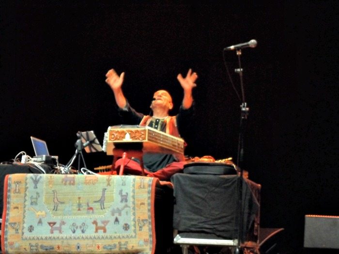 Ad aprire lo spettacolo è stato Paolo Tofani, che con la sua inseparabile trikanta veena ha intrattenuto il pubblico sulle note di “Trikanta veena suite“. Tofani ha creato uno strumento particolare e innovativo, dai suoni orientaleggianti, al quale ha addirittura dedicato un intero blog. La trikanta veena è composta da diverse armoniche, nella sua versione elettrica è accompagnata da numerosi effetti, che offrono un risultato curioso e particolare. Si vede chiaramente che Paolo Tofani è riuscito a trovare il suo strumento ideale, proprio come aveva a lungo sognato, perché ogni volta tiene la sua trikanta tra le mani suonandola con una passione quasi tangibile.