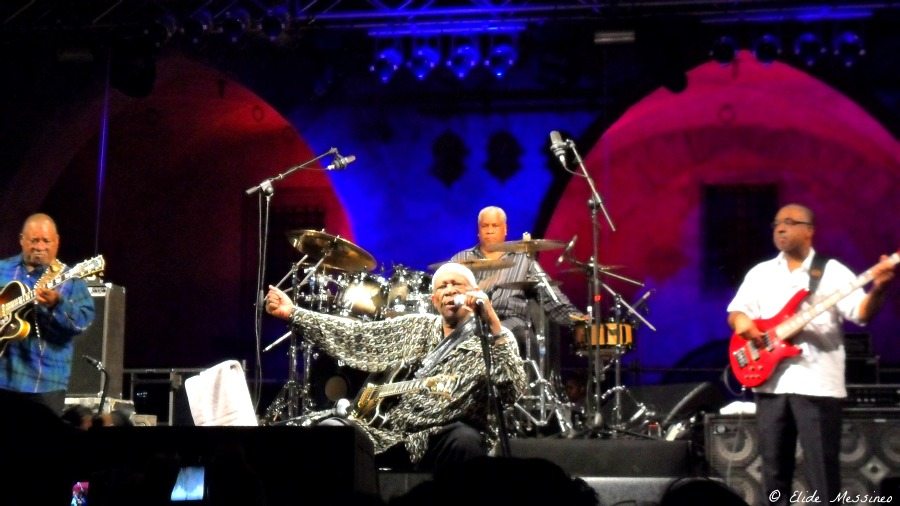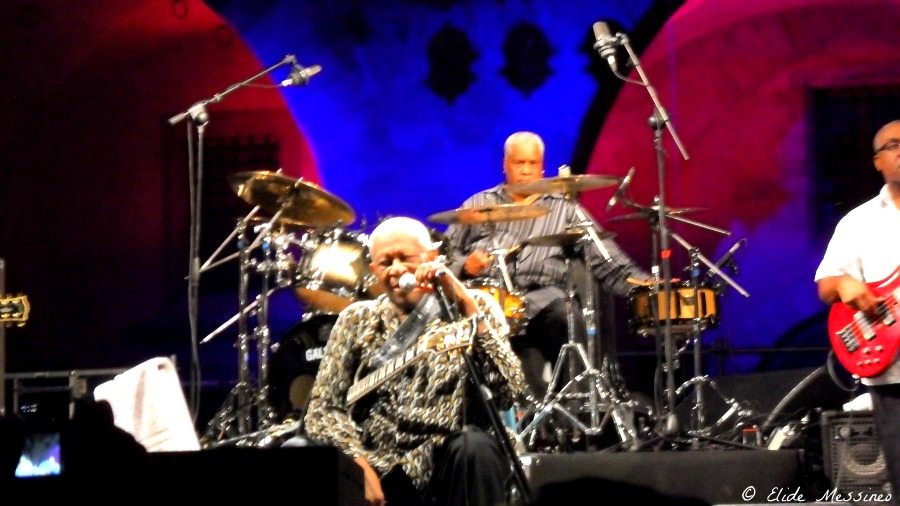 Se si pensa al blues non si può pensare a B. B. King, ospite per la decima volta al Pistoia Blues Festival. Chiaramente non più in forma come un tempo, il chitarrista non vuole ancora lasciare il suo pubblico. Accomodatosi su una sedia al centro del palco, ha intrattenuto da bravo show man i suoi spettatori, lasciando da parte i virtuosismi di un tempo.