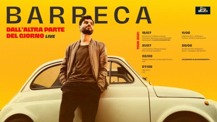 Il 15 luglio ha preso il via “Dall’altra parte del giorno tour 2021”, la tournée del cantante calabrese Barreca. La prima tappa è stata all’Unical di Rende (Cosenza) in occasione del Meridiano Sud Festival, come opening act in acoustic trio del concerto di Colapescedimartino.