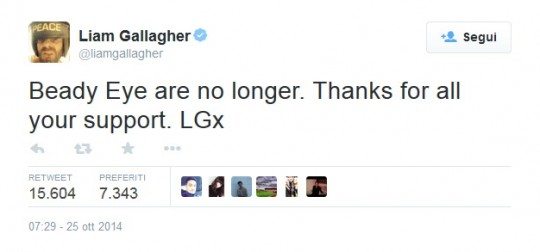 “I Beady Eyes non esistono più. Grazie per il vostro supporto. LGx“.