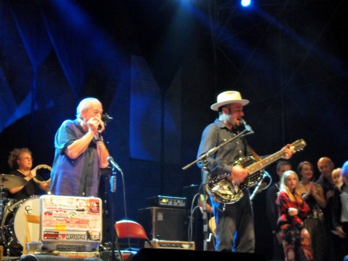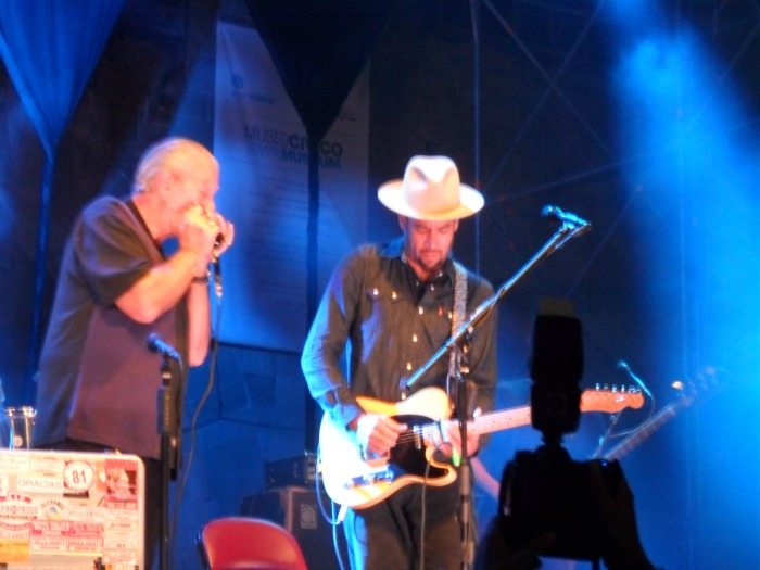 Tra i pezzi proposti “You found another lover”, “She got kick”, “When the levee breaks”e ancora “I’m goin’home”, “The blues Overtook me” in una versione molto suggestiva. Il pubblico ha apprezzato e partecipato, ma non si è potuto fare a meno di notare che per la musica in Italia ci sono stati tempi migliori. Nonostante la Toscana sia la Regione d’Italia che propone più Festival musicali estivi in assoluto, con artisti di grande rilievo, sono tempi duri per chi deve affrontare le spese del biglietto. La piazza del Duomo di Pistoia non era completamente piena, come succedeva fino a qualche anno fa. Tuttavia non è stato sufficiente ad influenzare la performance degli artisti, che si sono donati al pubblico, entusiasta di trovarli insieme. Se Musselwhite è già una leggenda vivente, a modo suo anche Ben Harper è riuscito a diventarlo: grande professionista, nascosto sotto il suo cappello, ha mostrato di essere in sintonia con il bluesman all’armonica, con il quale sta affrontando un lungo tour europeo.