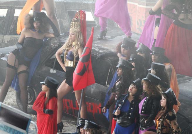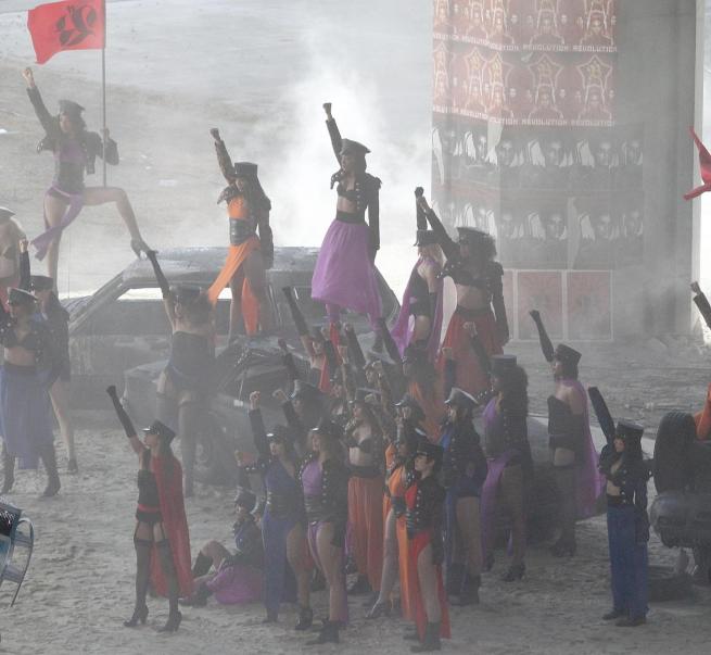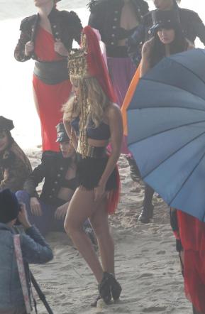 Le indiscrezioni parlano di un progetto grandioso, con due soli uomini in mezzo ad un corpo di ballo formato da 200 ballerine, ingaggiate per mettere in scena il tema incentrato sulla forza delle donne. A seguire le prime immagini rubate dal set: la bella cantante appare in abito da gladiatrice in mezzo alle ballerine.