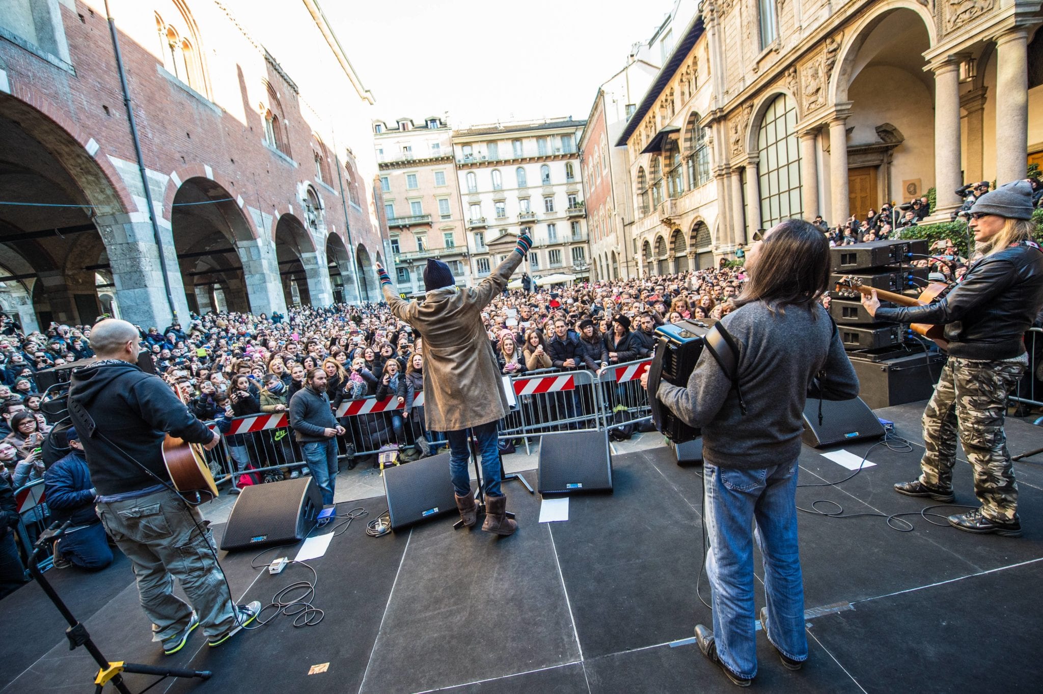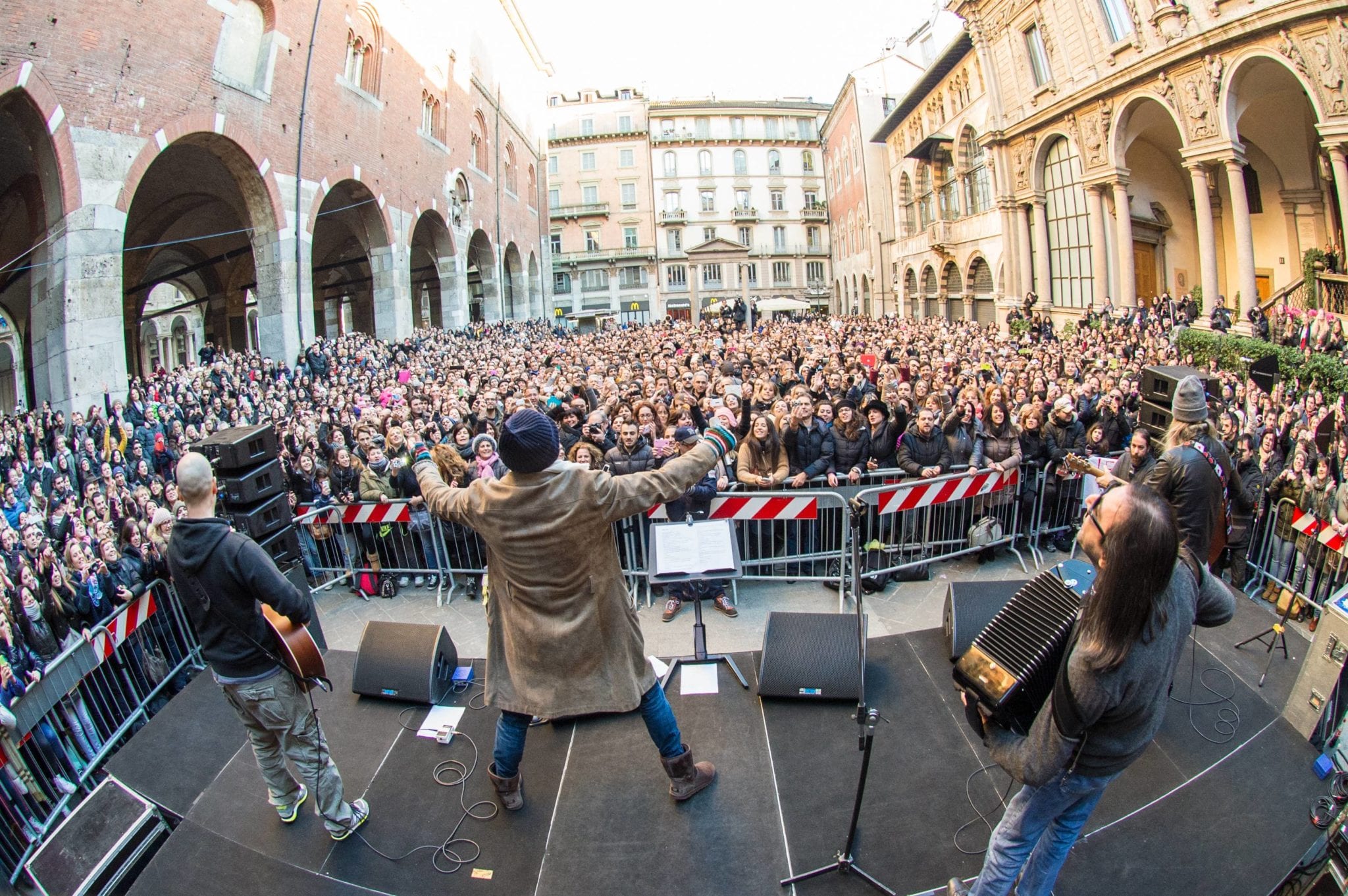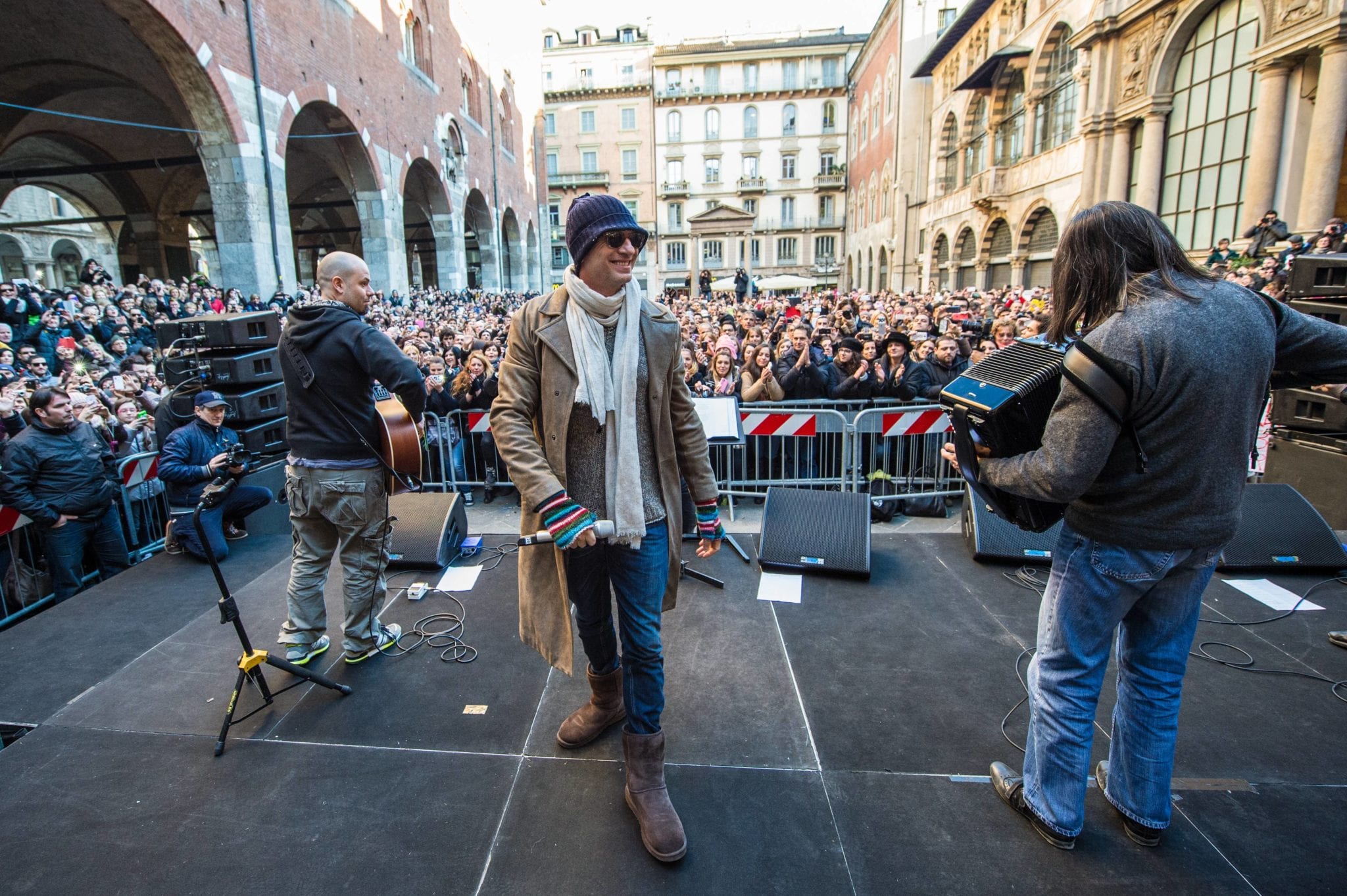 E’ arrivata a sorpresa con un messaggio pubblicato sulla pagina ufficiale di Facebook di Biagio Antonacci la notizia del concerto a sorpresa a Milano del cantautore. Piazza Mercanti del capoluogo lombardo si è trasformata in un raduno di entusiasti fan di Biagio accorsi numerosi per assistere ad un live del loro idolo del tutto particolare. Ad accompagnare infatti Biagio Antonacci in questo “concerto in strada” un gruppo di musicisti.
