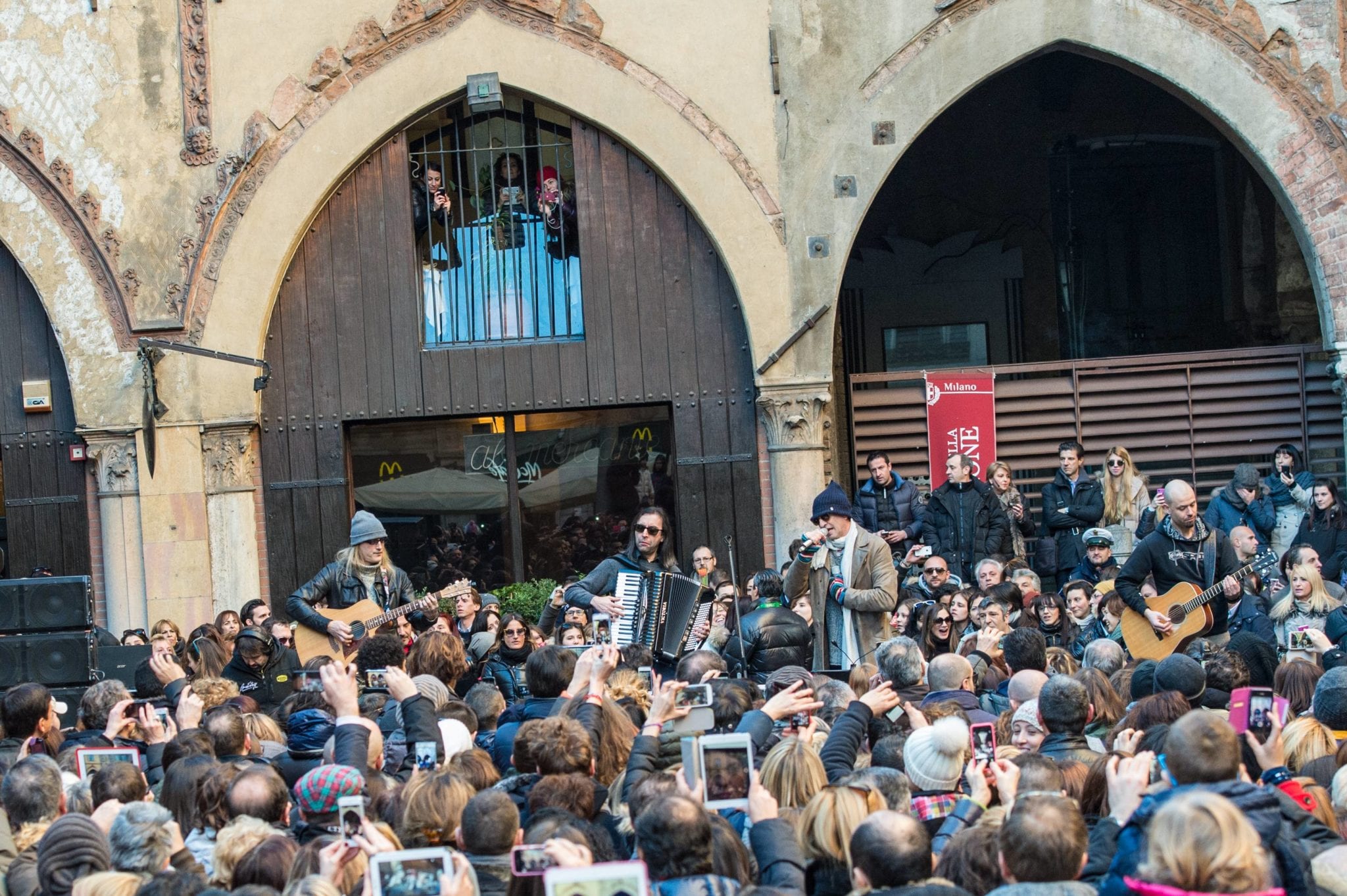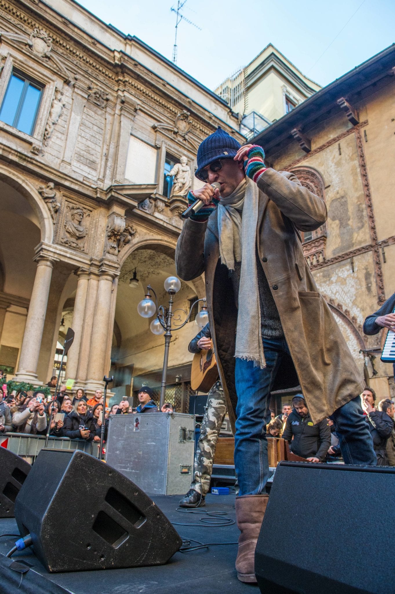 Il live è durato 45 minuti circa, e ha visto Biagio Antonacci in sciarpa, berretto, occhiali scuri e guanti a metà ha ringraziato il sindaco della città: “Ringrazio il Comune di Milano per avermi dato questa splendida occasione. La nostra è una città particolarmente attenta e mi auguro che riservi sempre maggiore interesse alla musica e all’arte e che la musica di strada sia sempre la protagonista in tutte le città d’Italia, non solo a Milano“.