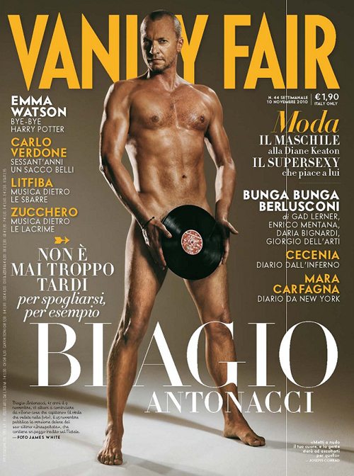 Il 47esimo compleanno è alle porte ma Biagio Antonacci non se ne preoccupa e decide di posare senza veli, coperto solo dal vinile del suo primo album “Sono cose che capitano” per la copertina del settimanale di Vanity Fair, in edicola da domani. Biagio Antonacci Il cantautore milanese dopo l’uscita del suo ultimo album “Inaspettata“, e in attesa della pubblicazione il 23 Novembre della versione deluxe dell’album che conterrà anche un inedito dedicato al Natale, si racconta parlando, tra l’altro, di paternità e del tempo che passa, strizzando l’occhio alla chirurgia estetica. “A 47 anni mi sento finalmente libero. Libero di fare qualcosa che la gente da me non si aspetta. Nude in copertina di solito si vedono solo donne. E, quando sono uomini, si tratta sempre di attori o modelli. Un cantautore non si è mai spogliato“, dichiara Antonacci lanciando una sfida ai colleghi: “…questa foto vuole essere soprattutto una provocazione: magari nei prossimi mesi qualche collega mi imita“. E ancora: “… il corpo per me non esisteva. Mai fatti neppure cinque minuti di sport,sono molto pigro di natura“, ma superata la soglia dei quarant’anni“… è diventato impensabile, senza preparazione fisica, reggere due ore e mezzo di concerto. Questa foto è anche un invito agli uomini della mia età che troppo spesso si lamentano del fisico: basta poco per tenersi in forma“. Quando poi si tocca l’argomento bisturi il cantante, senza giri di parole, ammette: “appena sentirò il bisogno di correre ai ripari per recuperare un po’ di giovinezza, non mi farò nessun problema. Sono assolutamente favorevole alla chirurgia estetica: se uno non si piace, perché deve rinunciare a migliorarsi?“. Poi parla della sua voglia di avere altri figli e dichiara di aver apprezzato “il coraggio” di Gianna Nannini di diventare mamma in età matura: “Le persone più grandi sanno dare una qualità di amore – per capacità di gestire, di educare, di accudire – di cui i giovani non sono capaci“.