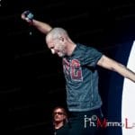 Poco dopo le 21 inizia il concerto , il Palabam è sold out e pulsa di entusiasmo, sono circa 5000, lì pronti a cantare e ballare con lui. Il palco si presente molto ricco, con sfere che scendono dal soffitto, a simboleggiare il sistema solare, e pedane circolari collegate tra loro che attraversano tutto il parterre, un disegno voluto da Biagio per arrivare il più vicino possibile ai suoi fan. Sullo sfondo i maxischermi a far da cornice alla maestosa struttura che ospita la band. L’artista arriva cantando “Cado” e si capisce già che sarà una grande festa. “Vi voglio vedere tutti andare a casa sudati e felici stasera“, e un boato di applausi gli risponde.