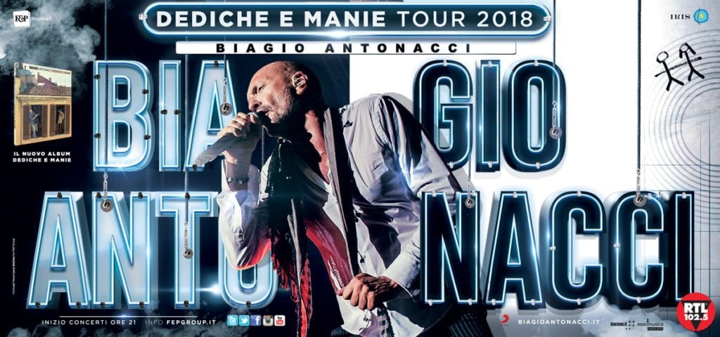 Questi attesissimi live seguono la pubblicazione di “Dediche e Manie” il nuovo album di Biagio Antonacci uscito lo scorso 10 novembre, su etichetta Iris distribuito da Sony Music.