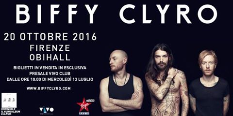 Dopo il successo riscosso il 10 luglio scorso al I-Day Festival al Parco di Monza, i Biffy Clyro ritorneranno in Italia per un concerto unico: un live al Teatro Obihall di Firenze il 20 ottobre prossimo.