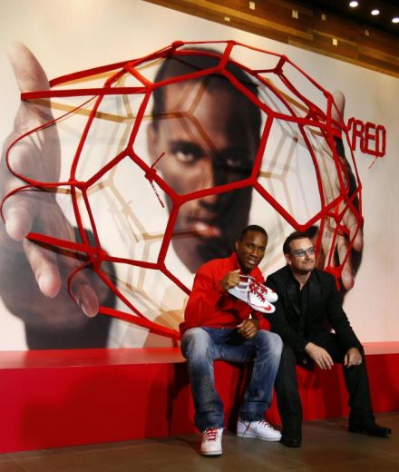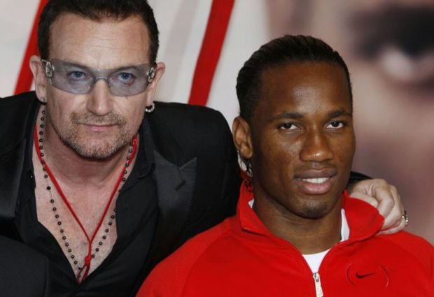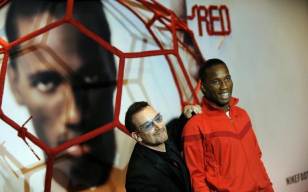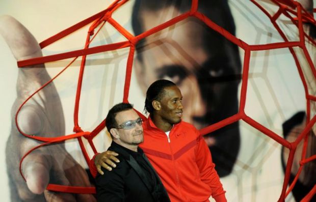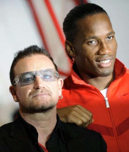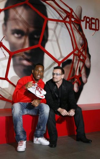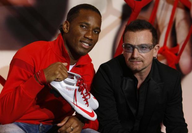 Bono insieme ad alcuni calciatori internazionali, tra cui Drogba, si sono uniti a sostegno della giornata dedicata alla lotta contro l’Aids nella campagna “Lace Up. Save Lives” (Allaccia le scarpe. Salverai delle vite).