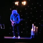 Immancabile il momento del selfie stereoscopico del “riccioloso” chitarrista, che immortala il pubblico del teatro in uno scatto 3-D.