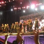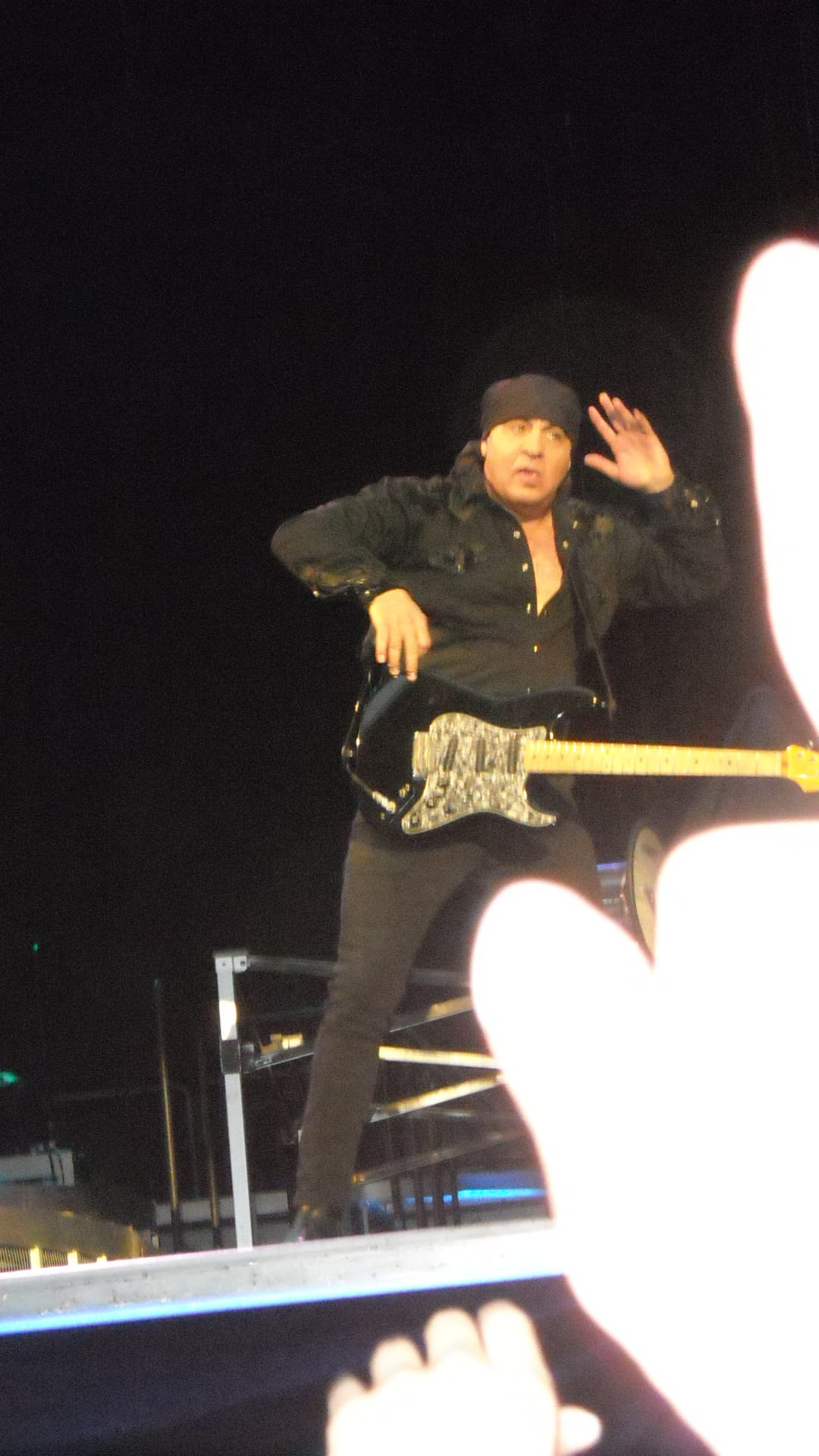 I saluti sono una formalità. Il tempo di asciugarsi il sudore e di bere un pò (in una ciotola immergendo la faccia dentro come quando si andava a prendere l’acqua al pozzo) e via con “Rocky Ground” (sublime la frase “There’s a new day coming” in controtempo sulla cappella di Michelle Moore che continuava imperterrita “We’ve been traveling on a Rocky Ground”); “Born in the Usa” e “Born to Run” con lo stadio in delirio, “Cadillac Ranch” e “Hungry Heart”; per quest’ultima il via all’esecuzione è stata data dal Boss semplicemente battendo due botte sul cuore con la mano destra, e la E-Street Band ha risposto subito!