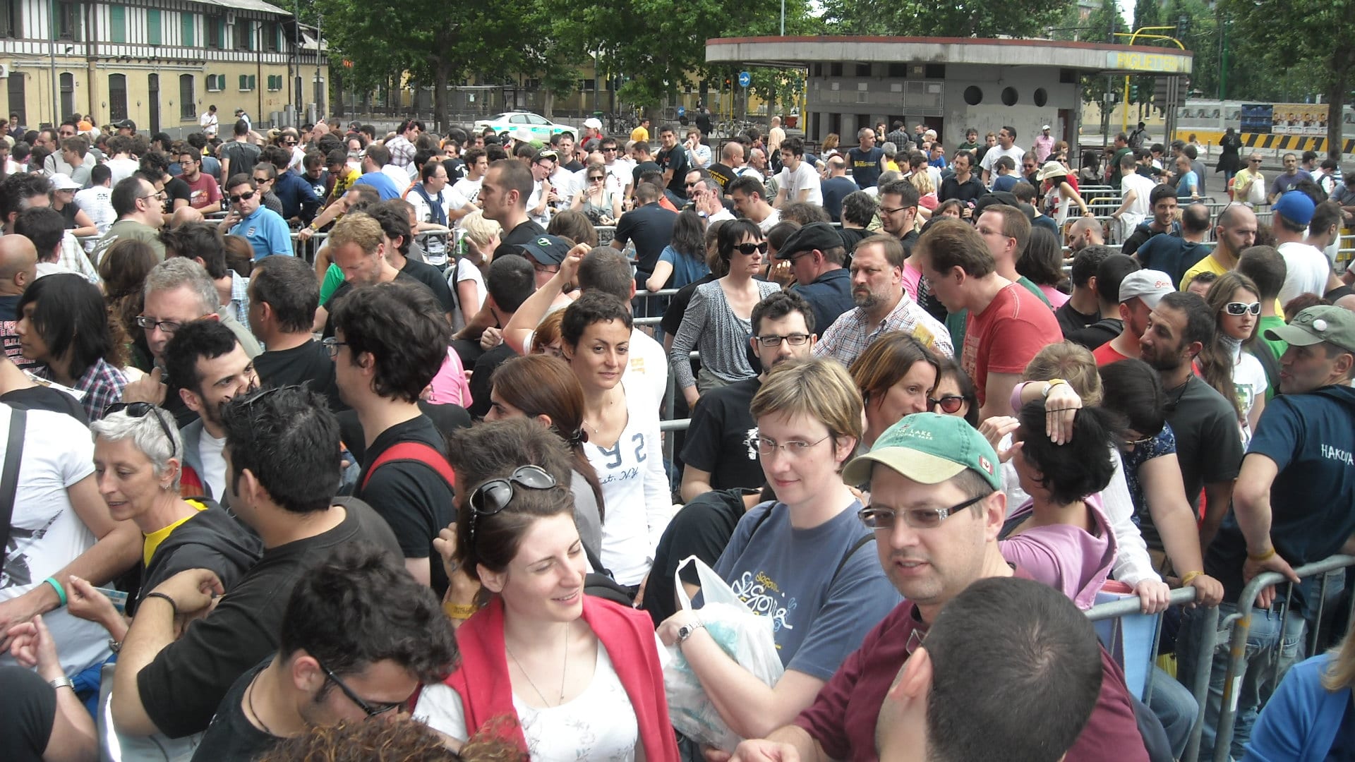 Un malumore circa questa trovata della lotteria per accedere alla zona Pit c’è stata. il sistema è stato democratico si, ma non meritocratico. In pratica si assegna un numero scritto a pennarello che da diritto a ricevere il bracciale (da 1 a 1500 persone) poi le restanti fino a riempimento zona Pit. Il risultato è che sono presenti almeno 2000 persone. Secondo il numero del braccialetto, poi, son state disposte 15 file da 100 persone ognuna ed un numero estratto (929) ha decretato il primo “fortunato” ad averne accesso. Il risultato è che il numero 928 è stato l’ultimo “fortunato” ad entrare. Ma non polemizziamo. Sembra giusto però dire che il pubblico italiano è conosciuto ed apprezzato dagli artisti internazionali per il calore e l’affetto che sono in grado di regalare; per questo è solito accamparsi fuori lo stadio già dal giorno prima, per garantirsi il posto in prima fila e scatenare gioia e follia rafforzando quell’empatia con l’artista.