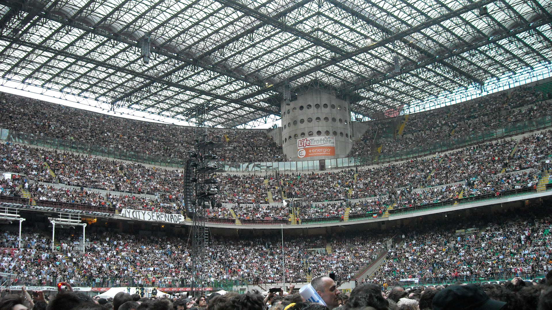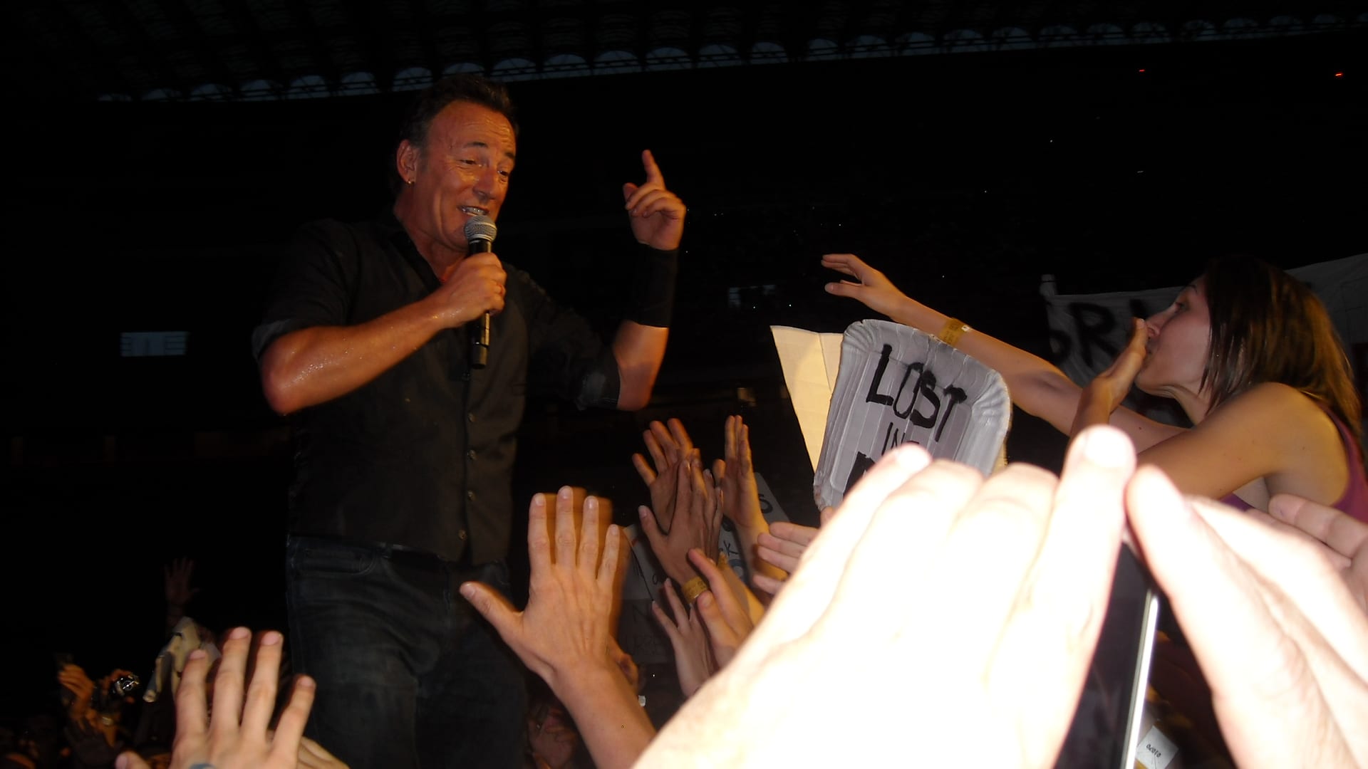 7 Giugno 2012, Stadio Giuseppe Meazza Milano. Bruce Springsteen inaugura la prima del tour italiano Wrecking Ball, che proseguirà alla volta di Firenze e di Trieste. Ed anche queste altre due città concederanno i rispettivi stadi, Artemio Franchi e Nereo Rocco. Nonostante la “Zona Pit” sottostante il palco (in gergo chiamata gabbia) San Siro era gremito di persone da un’estremità all’altra. (Considerando fan e pubblico in delirio sulle tribune e nel parterre) si contavano 70.000 persone, 140.000 braccia alzate verso il cielo o in direzione di Springsteen. Che senza schermi si concedeva, a colpi di chitarra…o per invitare bambini a cantare e ballare sul palco (una bambina prima ed un bambino poi hanno cantato sulle note di “Waitin’ on a Sunny Day”, un’altra bambina ha ballato con il Boss sul palco sulle note di “Dancing in the Dark”). Tutto questo sotto gli occhi dei bodyguard, rimasti attoniti a guardare Springsteen che domava il suo pubblico senza che questo invadesse il palco, se non invitati dal domatore (anche quando, sempre sulle note di “Dancing in the Dark”, ha invitato a ballare con Jake Clemons una ragazza che glielo ha chiesto esponendo un cartellone con su scritto:“Bruce can I dance with Jake?”).