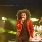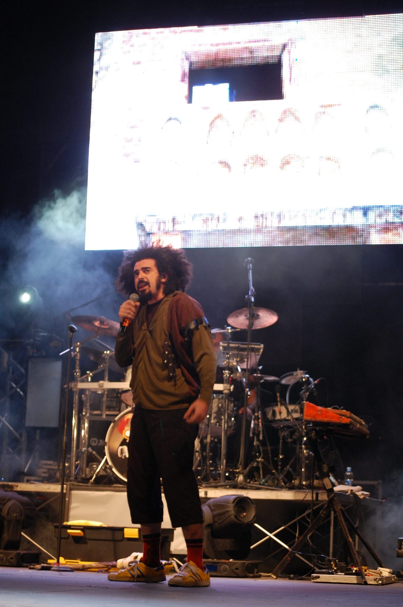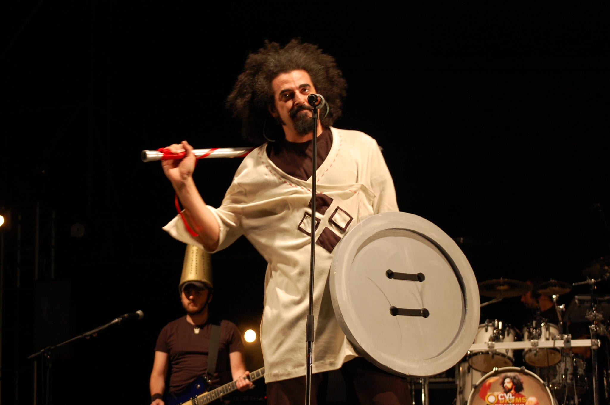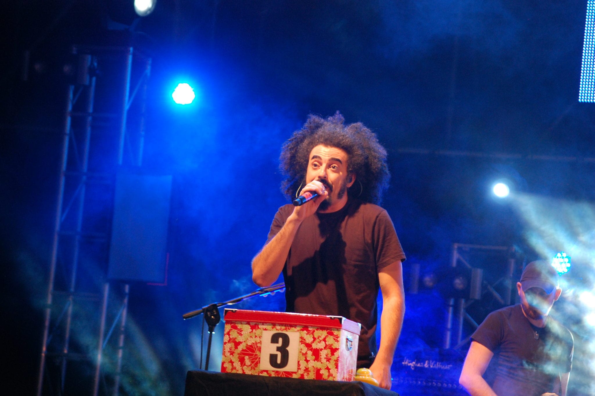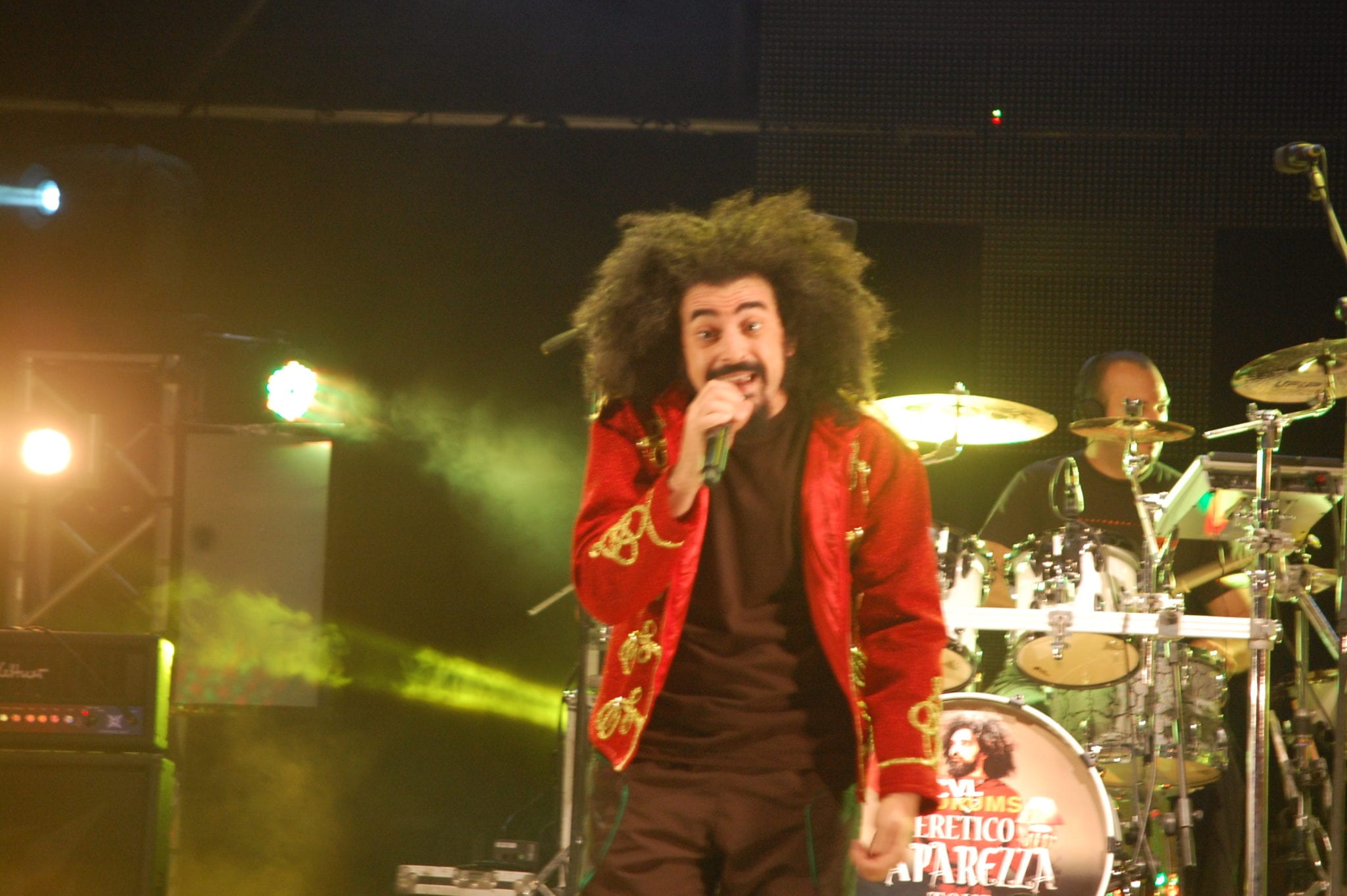 In programmazione per la quarta giornata di concerti c’erano da un lato i Capone & BungtBangt, gruppo dell’interland napoletano che sta riscuotendo successo per una peculiarità oltre che alla particolarità della musica che propongono: sono i primi ad utilizzare degli strumenti musicali costruiti con le proprie mani e ricavati dal materiale riciclato; Caparezza e il suo Eretico Tour, dall’altro, atteso come headliner non per il successo che sta sta riscuotendo – la musica di qualità fa sempre un certo effetto – ma per i contenuti mai scontati dei propri testi e la capacità di trasformare un concerto in una vera e propria fiction. Ed è stato davvero un bel gioco di contrapposizioni, controsensi, paradossi: da un lato i Capone & BungtBangt fanno ballare il pubblico, lo incitano, lo provocano e fanno vedere che la musica non per forza si suona con gli strumenti costosi e raffinati ma è possibile tirarla fuori anche da materiale di riciclo; dall’altro Caparezza porta in scena il suo “Eretico Tour”, e non il contrario: si perchè al seguito conta più menti giovani che regresse, dove per giovani si intende qualsivoglia persona che non basa l’età in merito alla carta d’identità, e le sue fiction esemplificano (o meglio…amplificano) il messaggio a tratti latente.