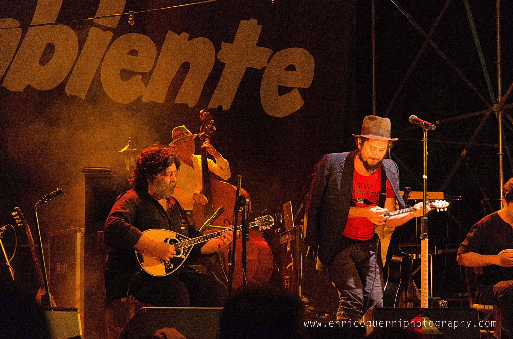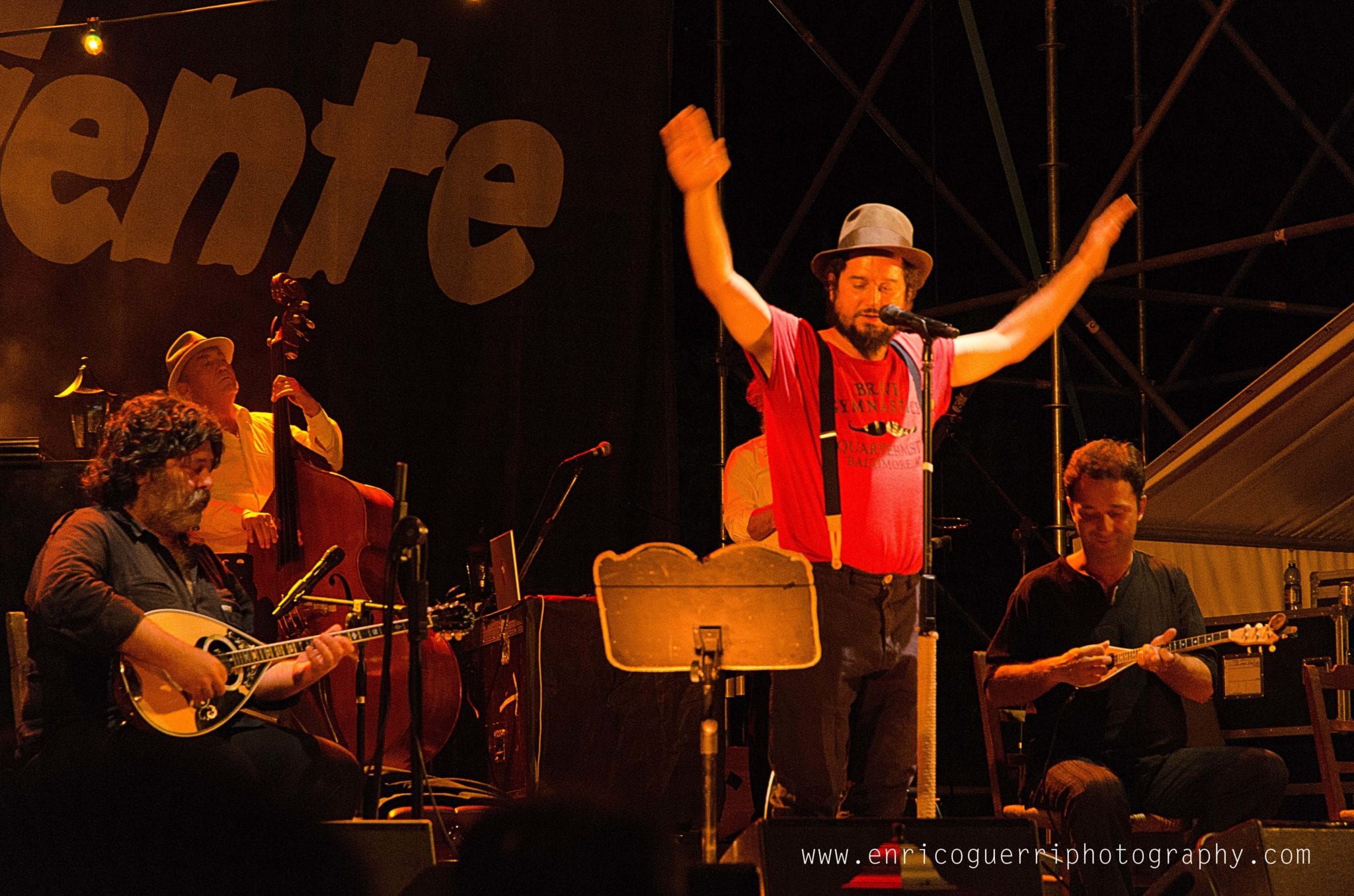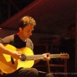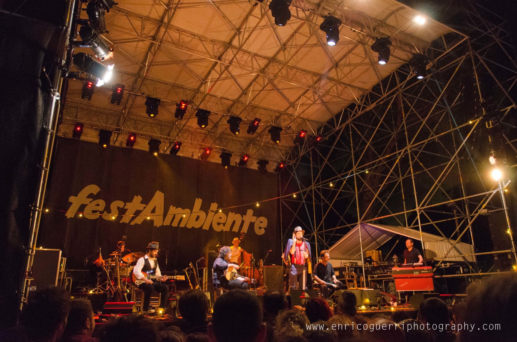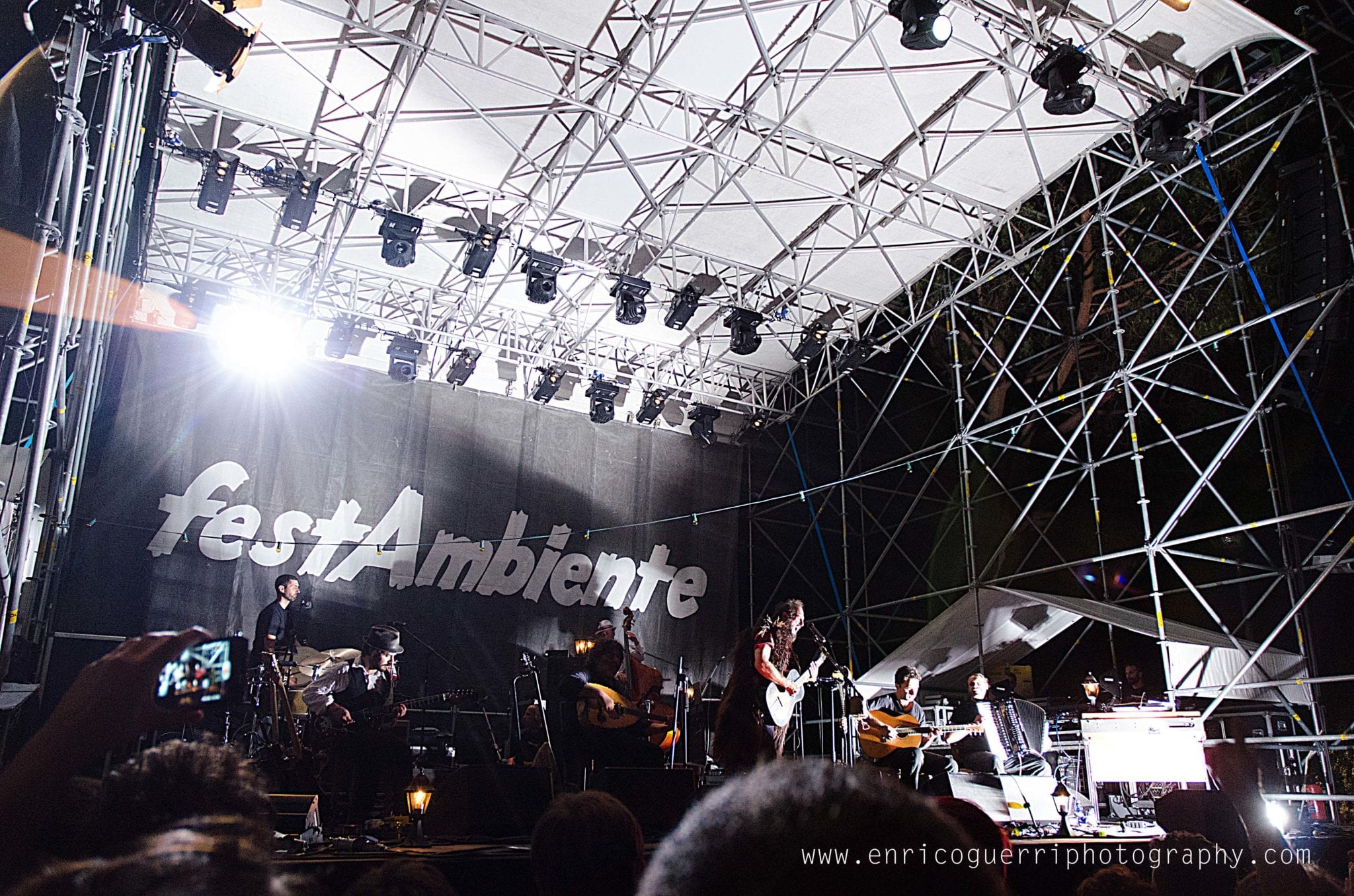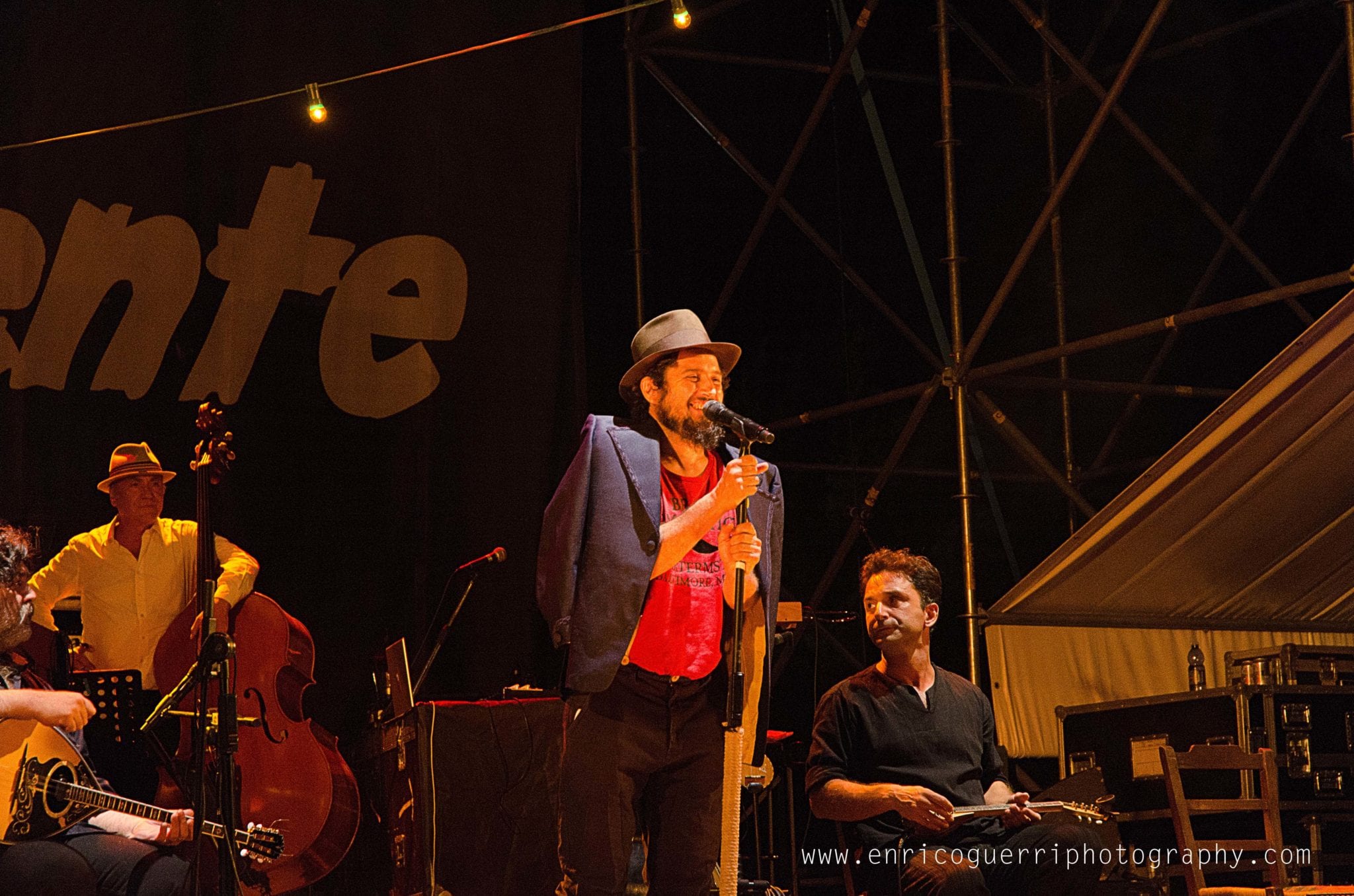 Partiamo male, cerco un inquadratura del palco vuoto con il telone con la scritta “Festambiente”, ed uno dell’organizzazione gentilmente chiede di non utilizzare il flash perché disturba l’artista nello spettacolo.Che dire? Rispetto la richiesta ma ne resto profondamente perplesso, dato che con le macchinettine digitali era un proliferare di flash sotto il palco.