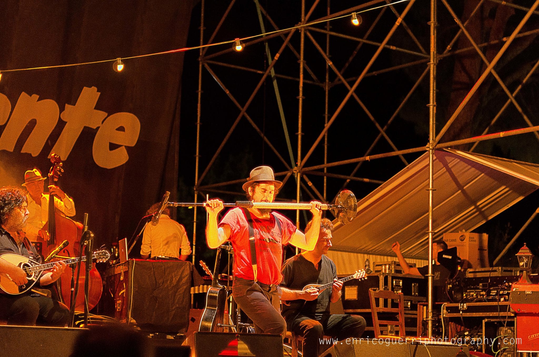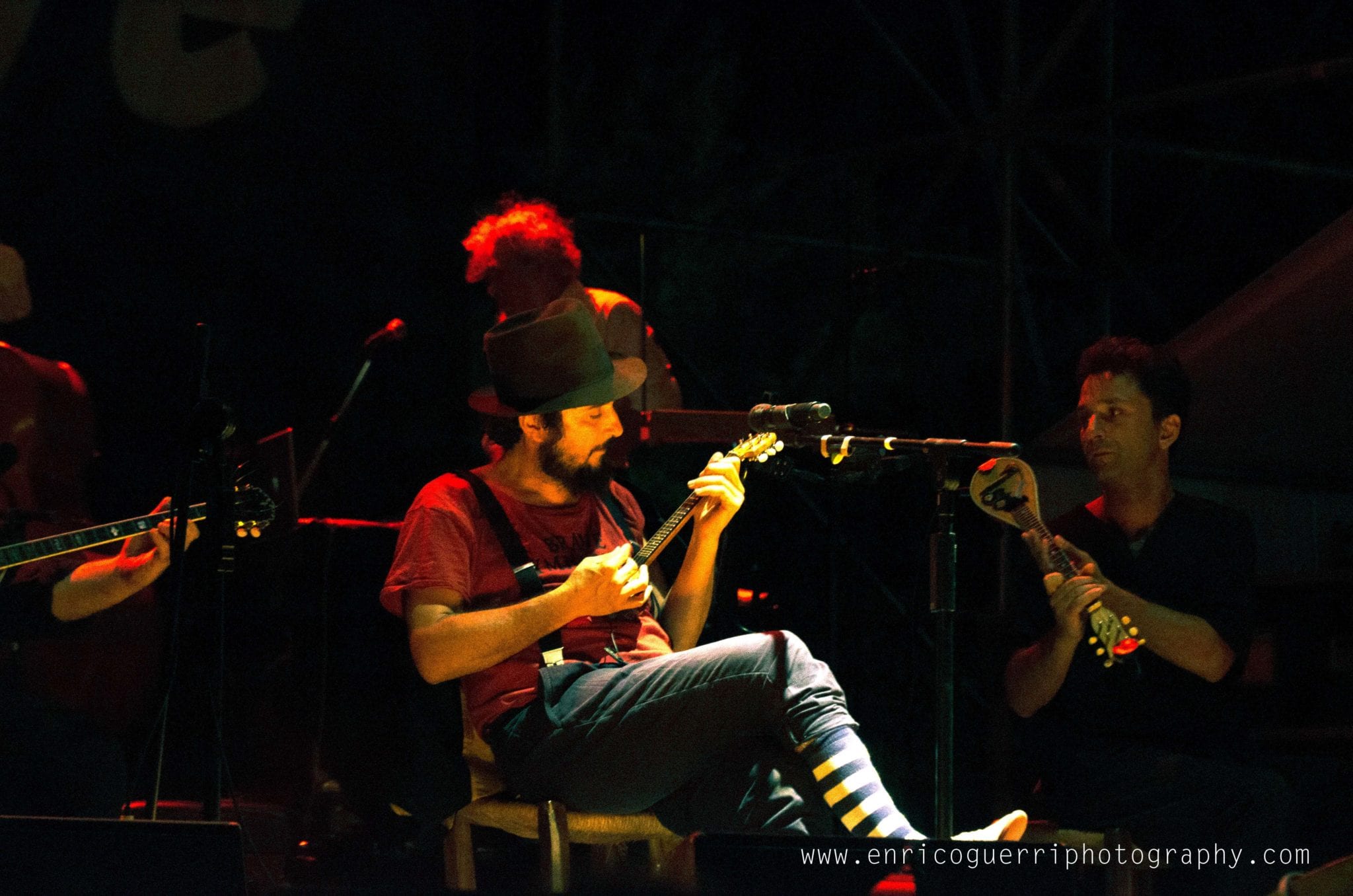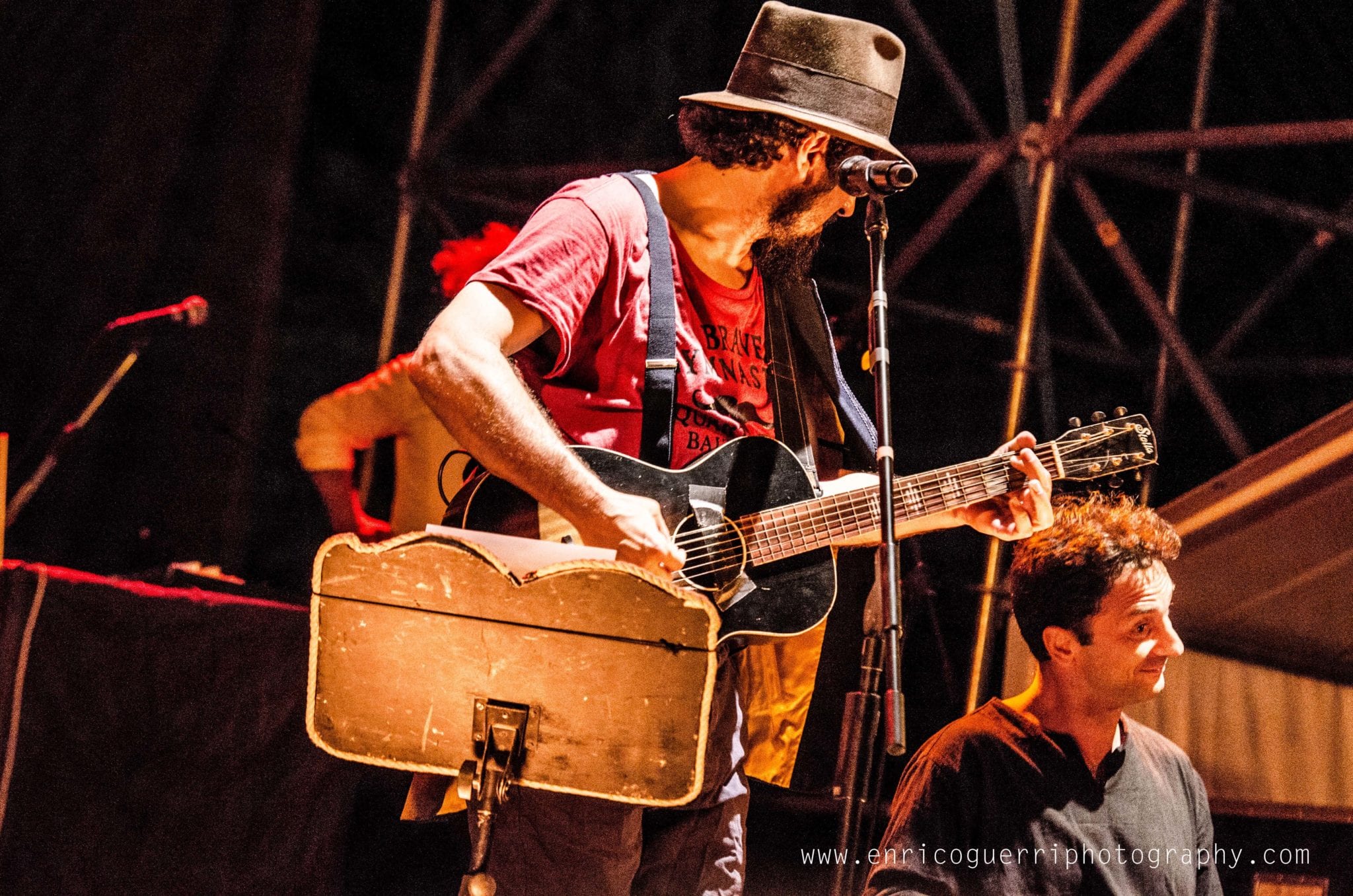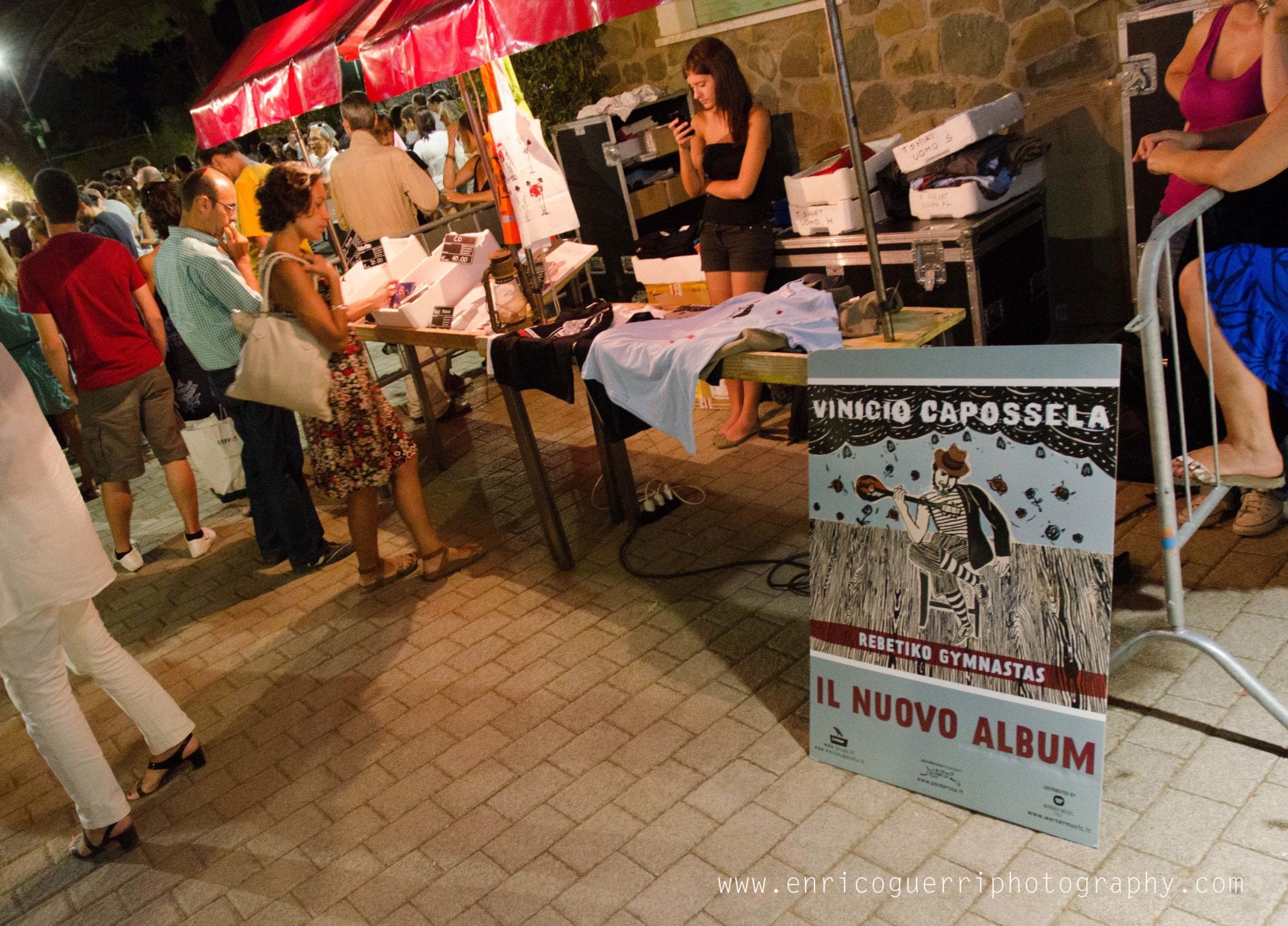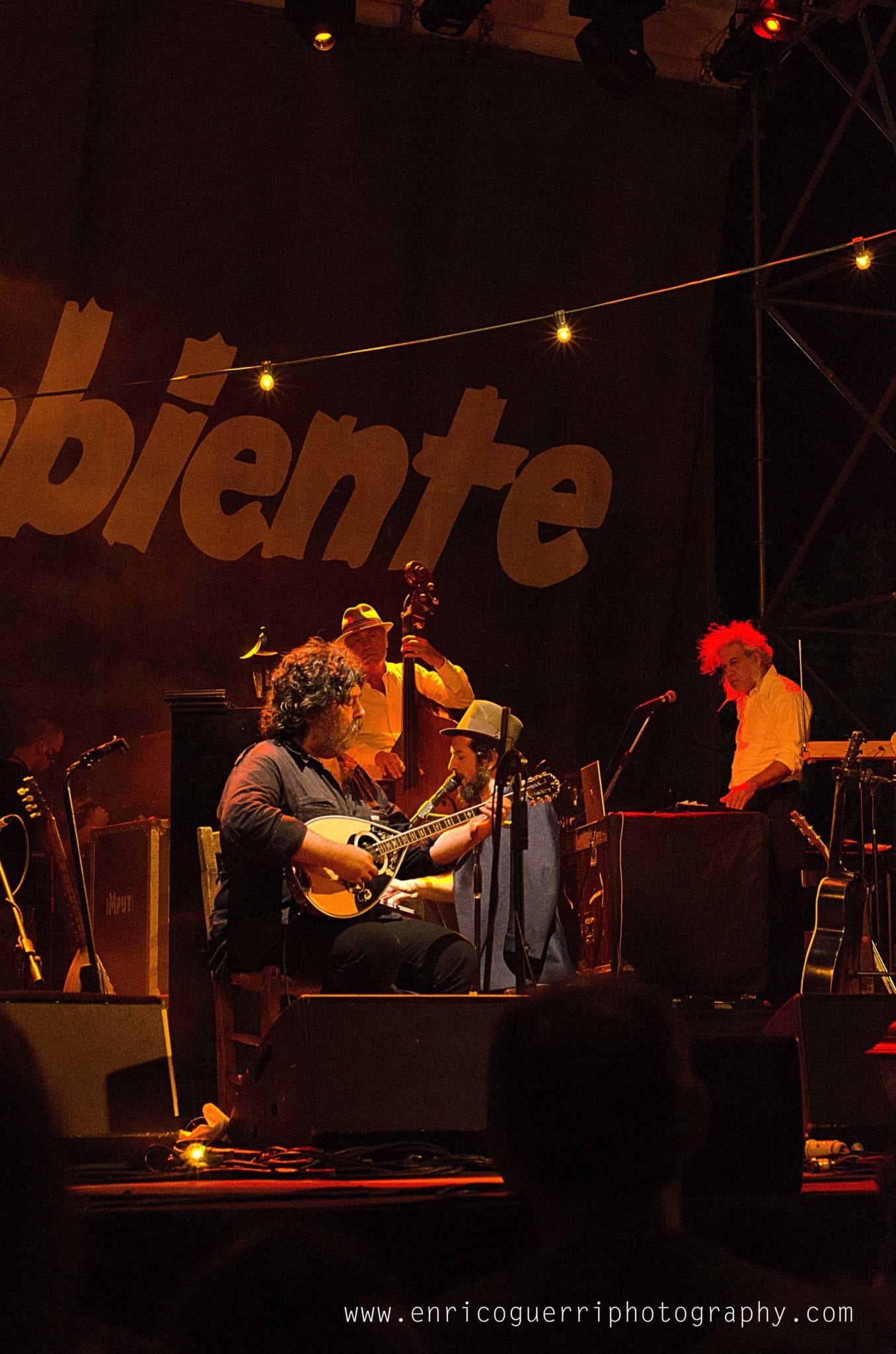 Partiamo male, cerco un inquadratura del palco vuoto con il telone con la scritta “Festambiente”, ed uno dell’organizzazione gentilmente chiede di non utilizzare il flash perché disturba l’artista nello spettacolo.Che dire? Rispetto la richiesta ma ne resto profondamente perplesso, dato che con le macchinettine digitali era un proliferare di flash sotto il palco.