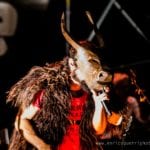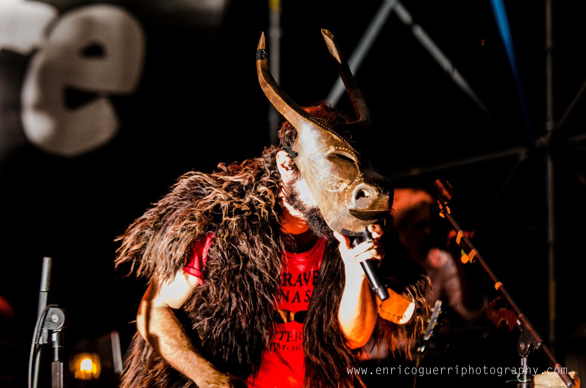 Successivamente, quasi in ultimo tocca al “Minotauro” ed ai “campanacci”. Capossela indossa un pellicciotto al posto della giacca, ed una maschera da Minotauro, e con i campanacci “suonati” (o meglio..agitati), intona “Brucia Troia”.