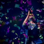 I Coldplay sono stati gli headliner della terza giornata del Glastonbury Festival. La band capitanata da Chris Martin ha portato sul Pyramid Stage uno show pirotecnico con tanto di luci e fuochi d’artificio, perfettamente a tema con il titolo del loro live “Back To The Future”.